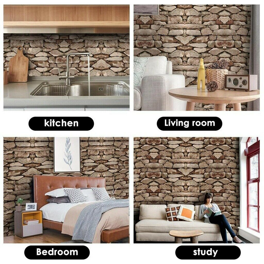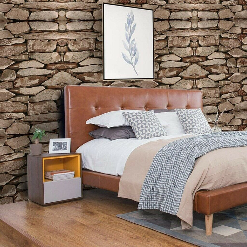 Stone Wall Wallpaper Roll 3D Effect Wallcovering For Living Room Decor UK