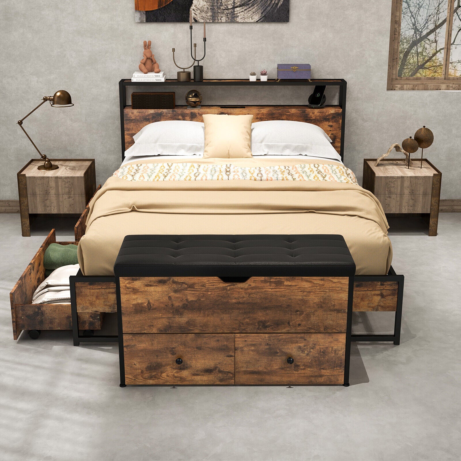 Storage Ottoman Bench Flip Top Storage Chest with 2 Drawers Wooden Storage Bench