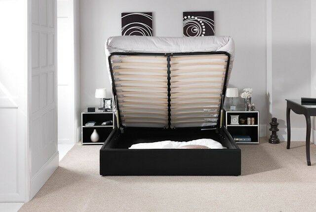 STORAGE OTTOMAN GAS LIFT DOUBLE OR KING SIZE LEATHER BED + MEMORY FOAM MATTRESS
