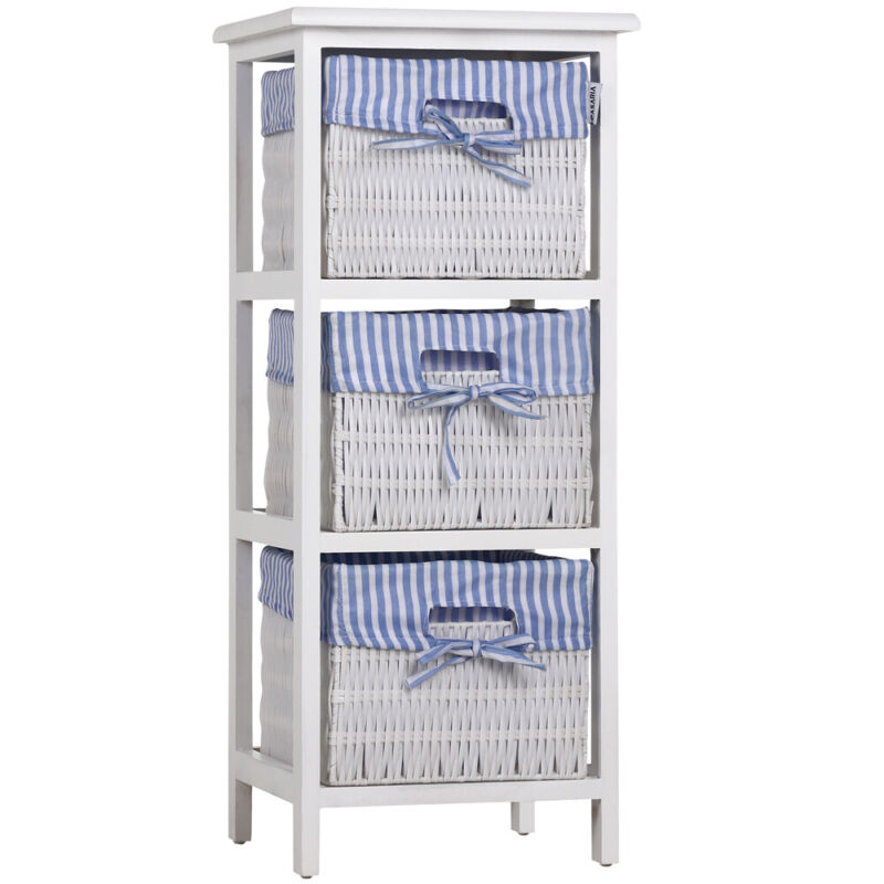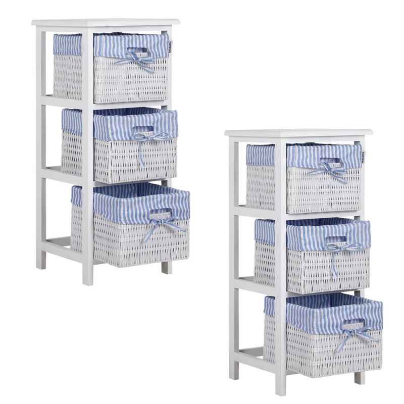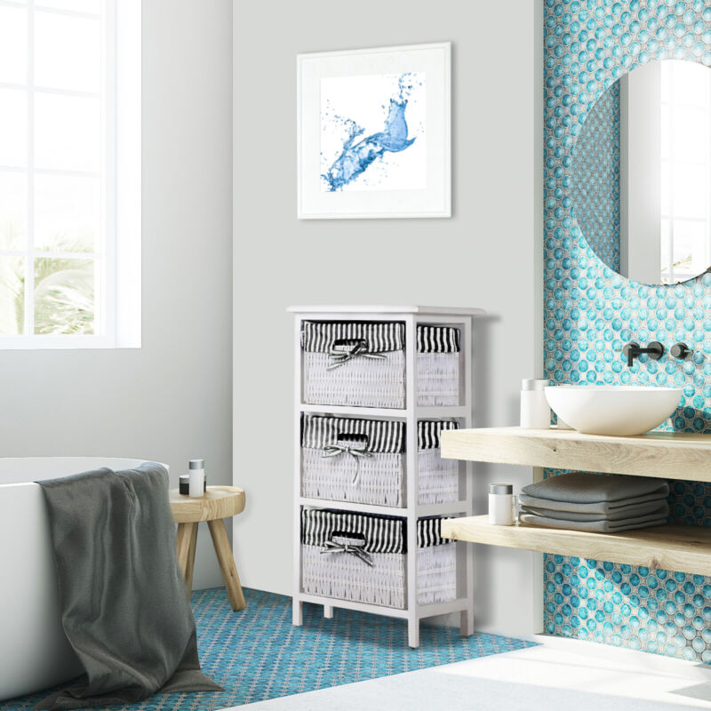Storage Unit Basket Chest of Drawers Wicker Bathroom Furniture Shelf Cabinet
