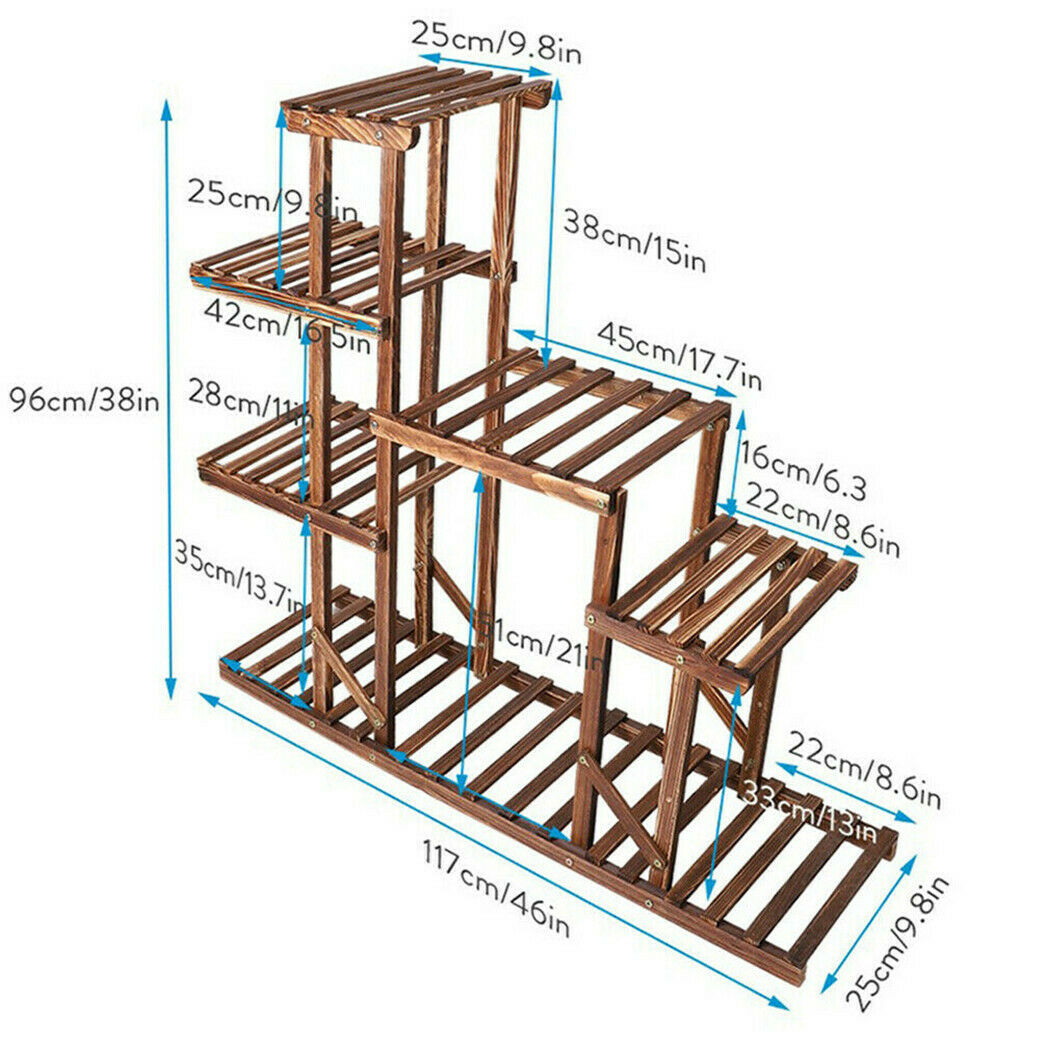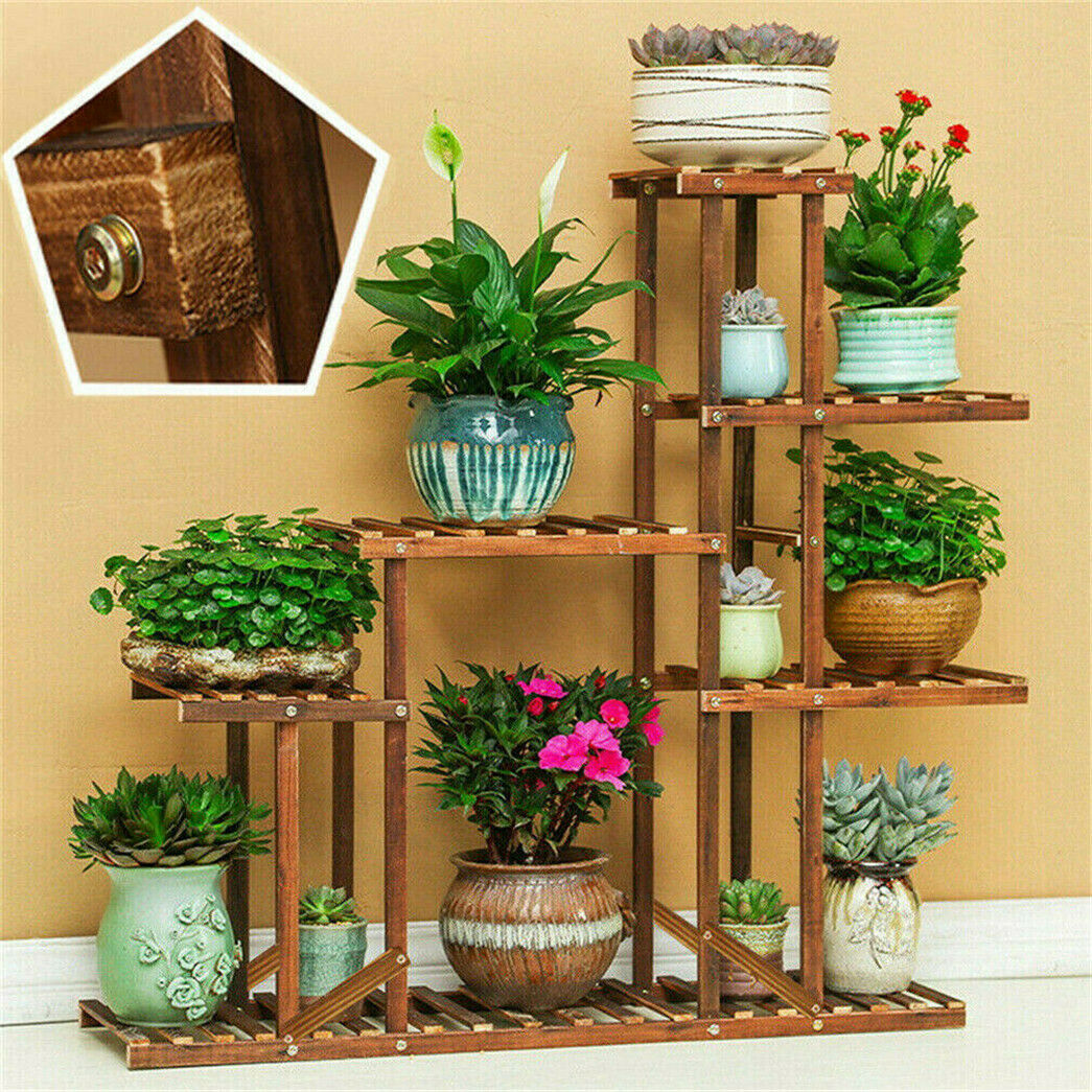 Strong 5 Tier Wooden Plant Stand Flower Pot Storage Rack Indoor Garden Bedroom