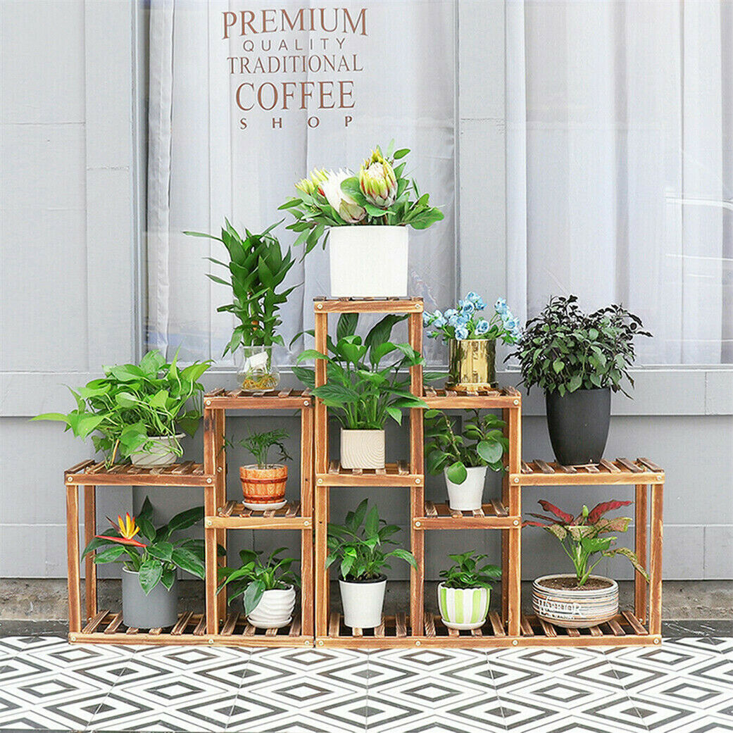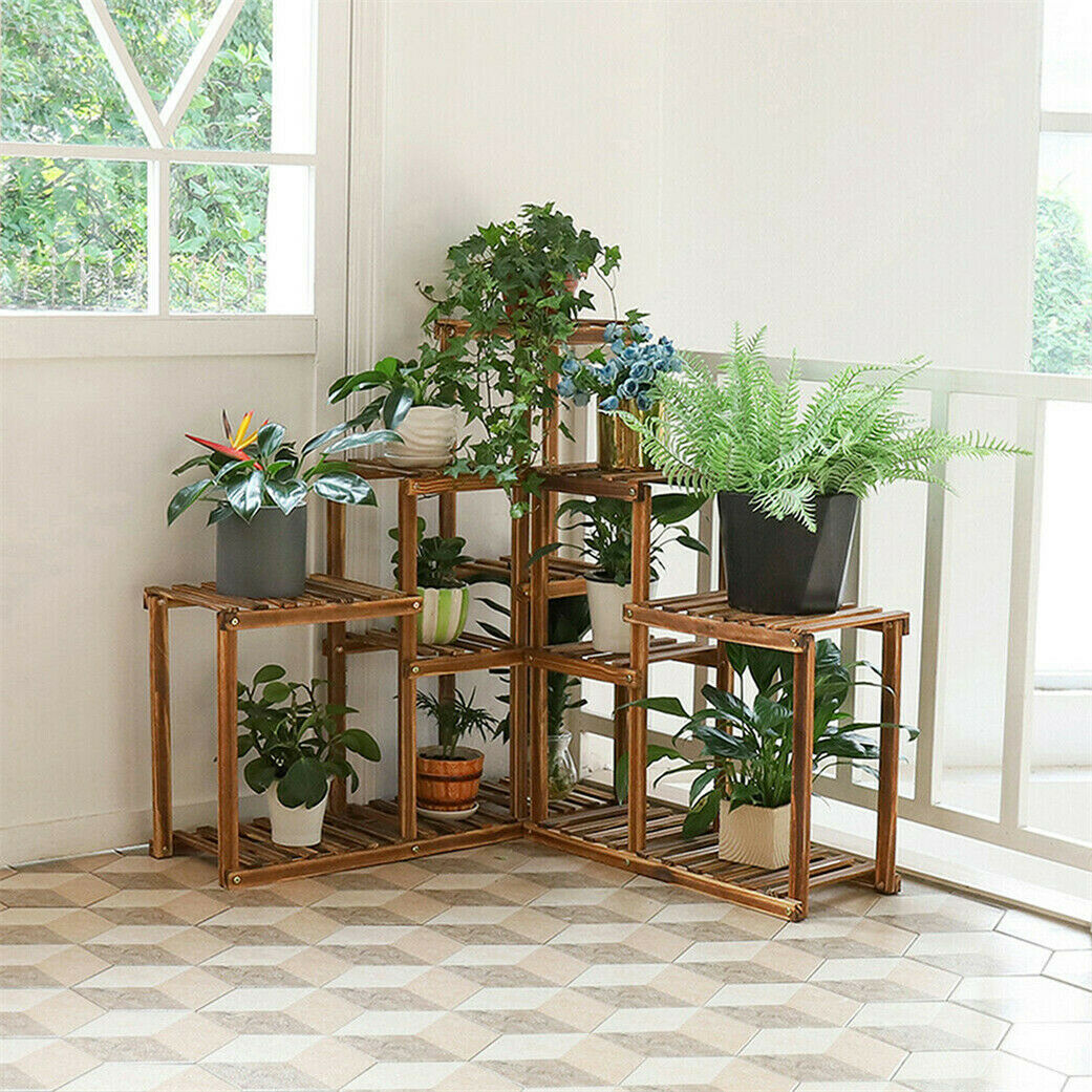 Strong Bearing Large Wooden Plant Stand Corner Flower Shelf Holder Anti-Mildew