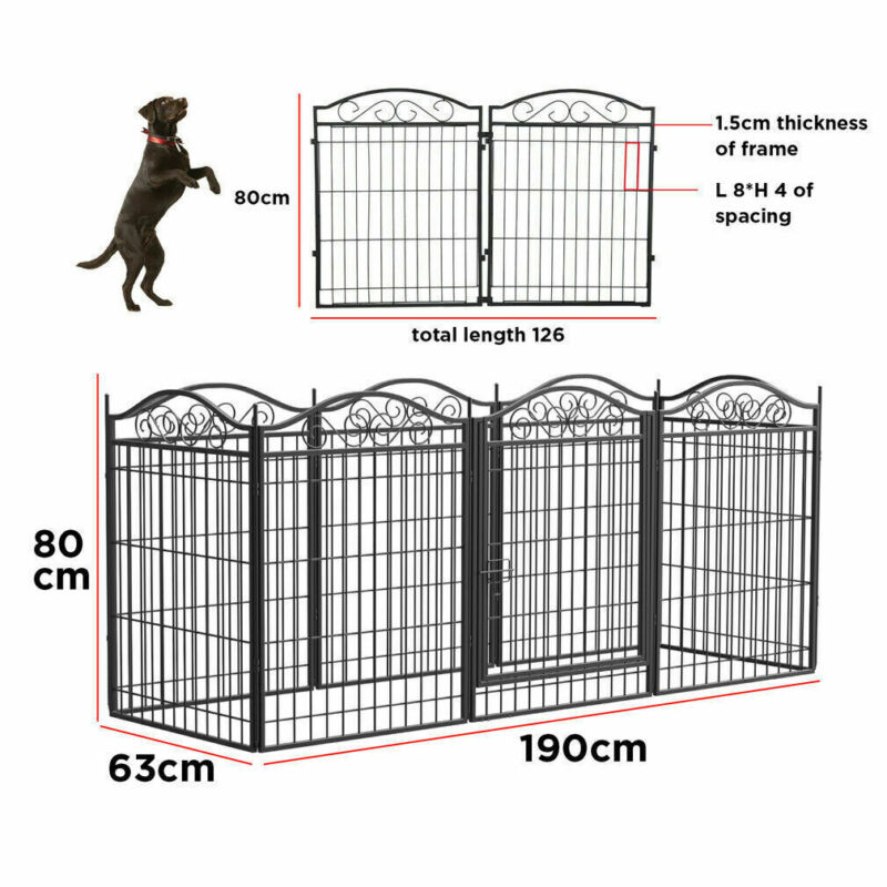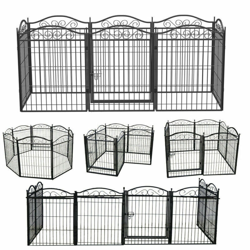 Strong Pet Dog Playpen Garden Enclosure 8 Panel Cat Cage Metal Fence With latch