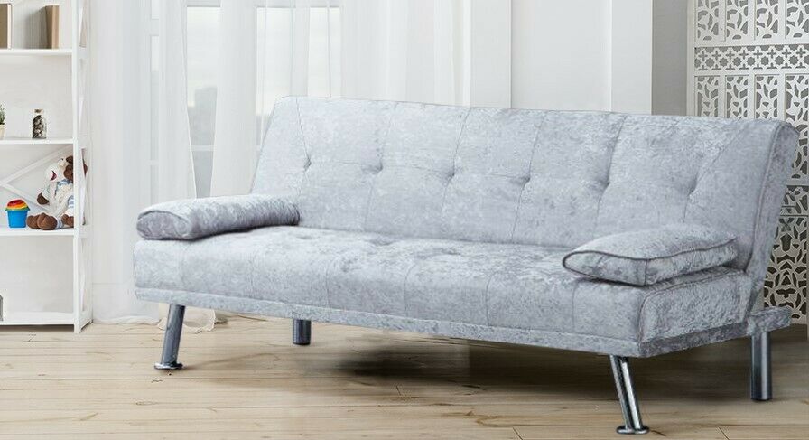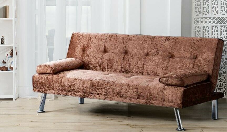 Stunning Crush Velvet Italian Designer Style Sofa Bed with Chrome Legs 4 Colours