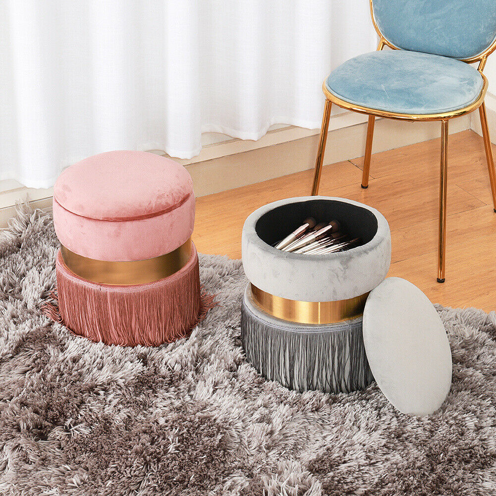 Stunning Velvet Storage Stool Bedroom Ottoman Pouffe Footstool With Tassel Trim