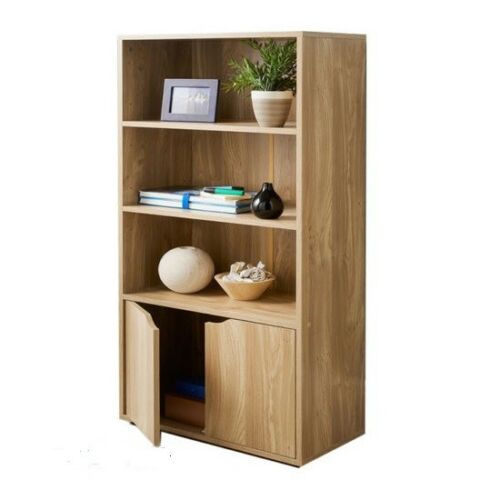 Stylish 2 Door Bookcase Shelf with Adjustable Shelves Storage Cabinet Oak Finish