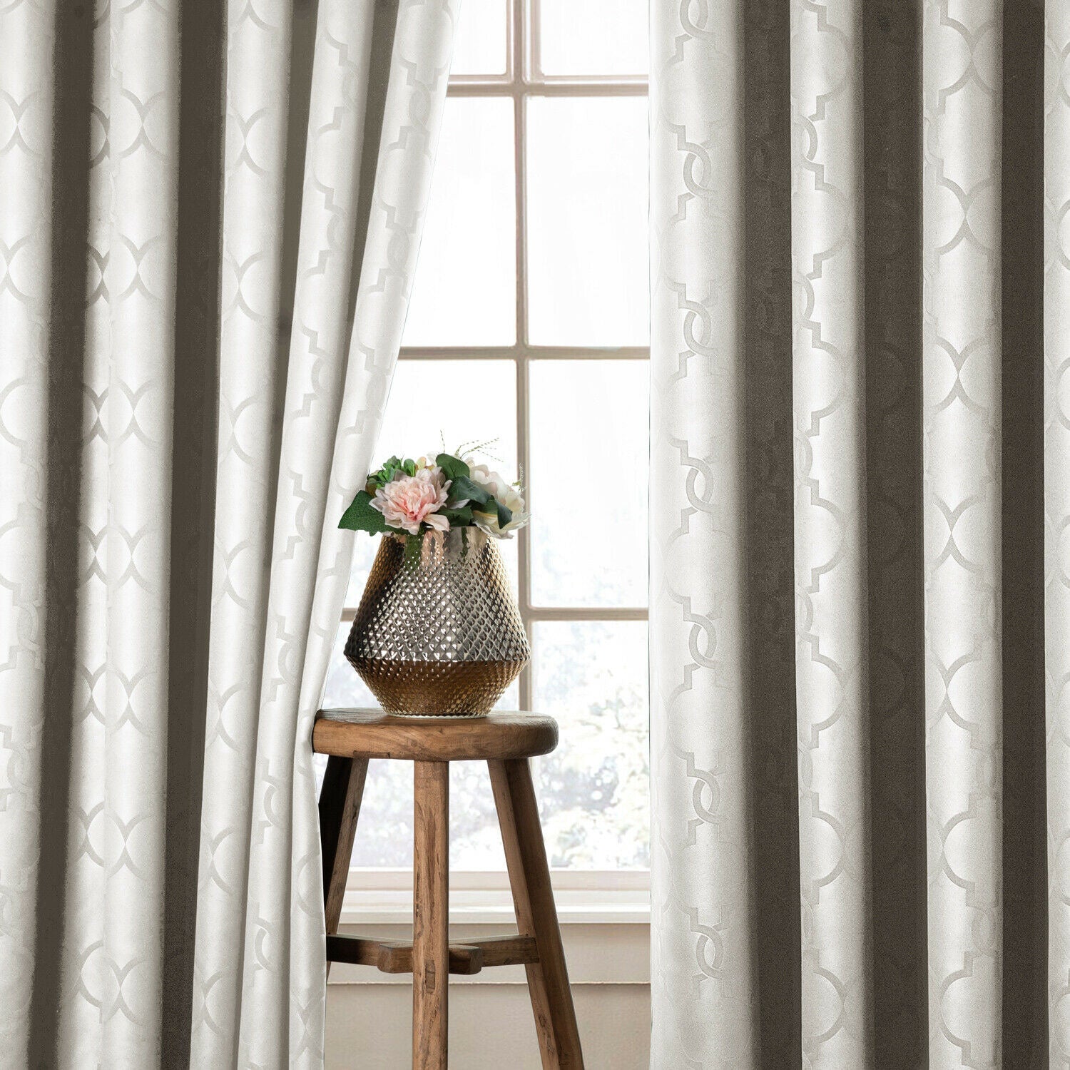 Stylish Embossed Blackout Geometric Curtain Energy Saving Silver Drape Tiebacks
