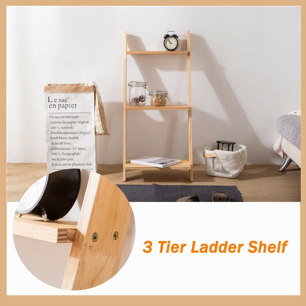 Stylish Ladder Shelving Unit 3 Tier Wall Leaning Bookcase Storage Display Stand