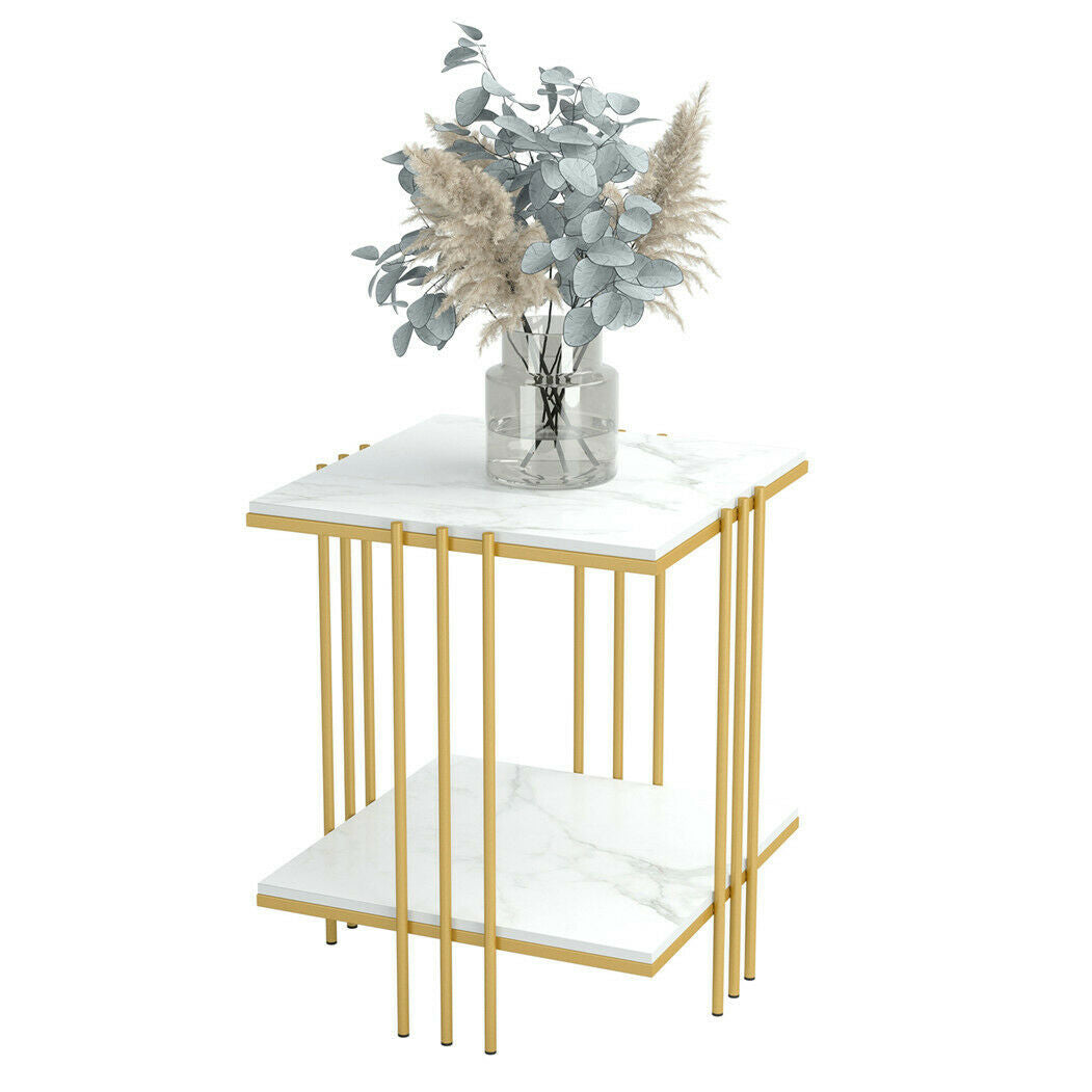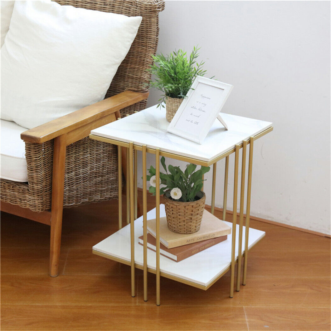 Stylish Square Marble Side Table Compact Sofa Snack Coffee Table Nightstand