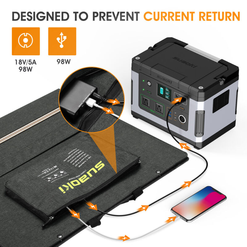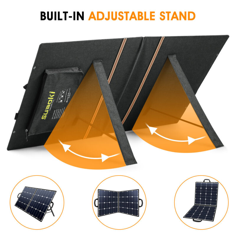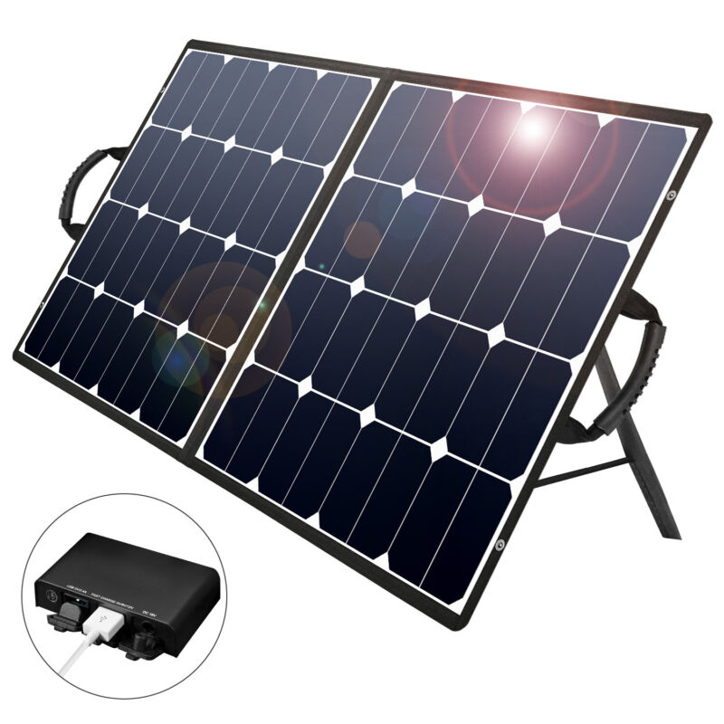 Suaoki 100W Foldable Dual-Port Solar Panel 10 In 1 Connector Cable Camping UK