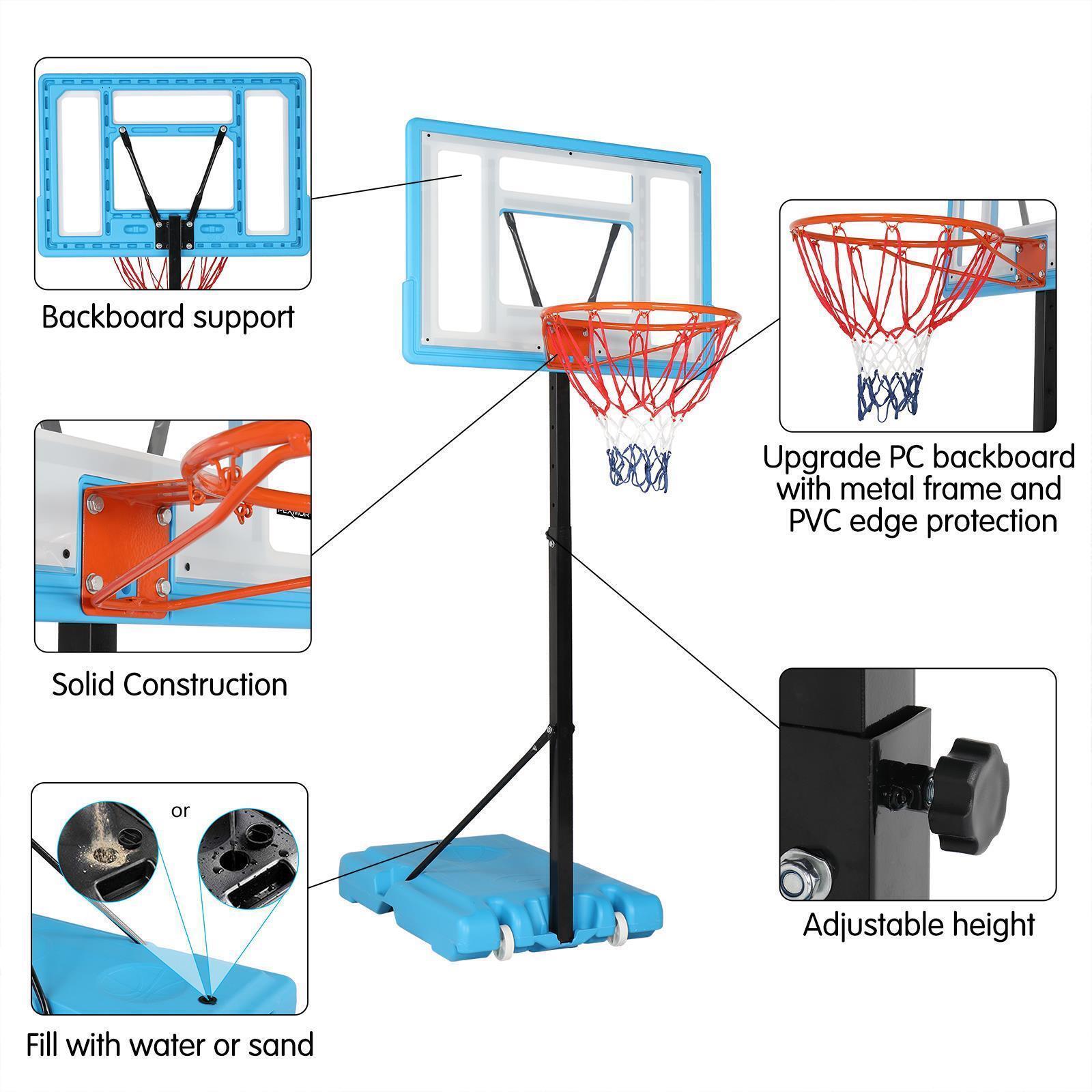 Summer 2-2.4M Swiming Pool Basketball Hoop Freestanding PVC Backboard Adjustable