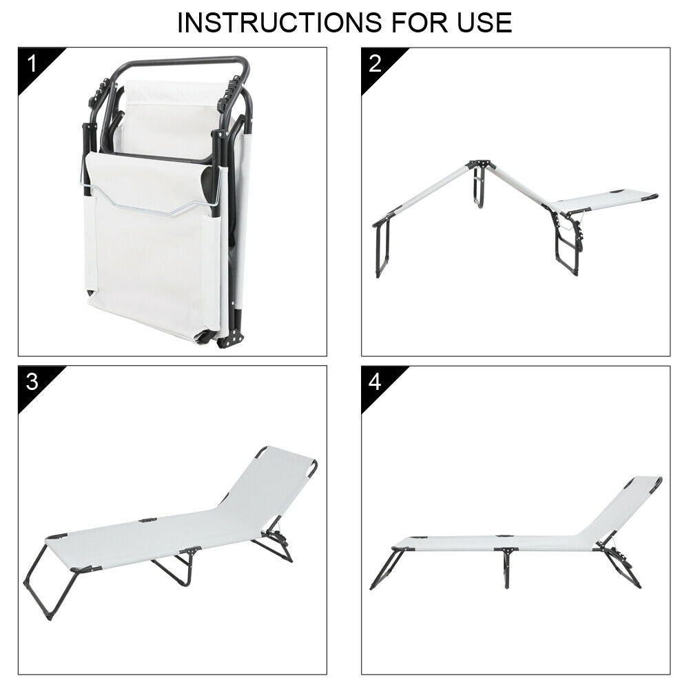 Sun Lounger Folding Recliner Chair Portable Reclining Garden Outdoor Seat Bed