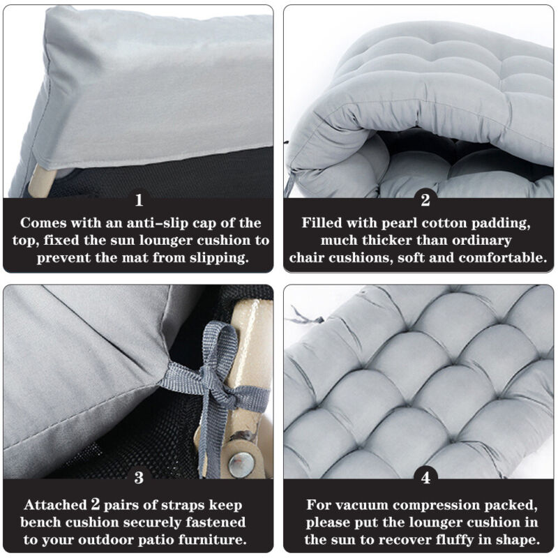 Sun Lounger Replacement Cushion Outdoor Garden Recliner Chair Seat Pad 160cm XL