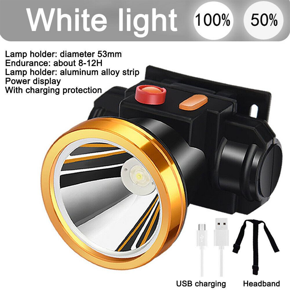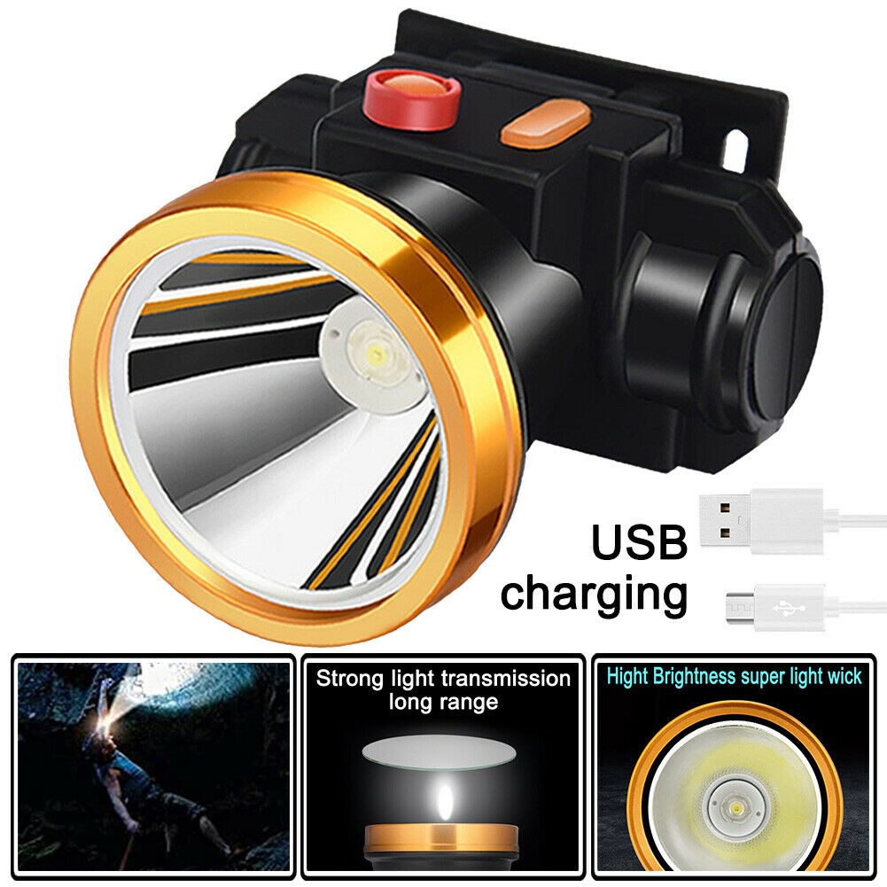 Super Bright Waterproof Head Torch Headlight LED-USB Rechargeable Headlamp Fish