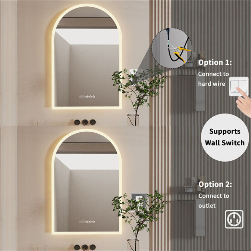 Superbright LED Bathroom Mirror Arch HD Smart Vanity Mirror Anti Fog Frameless