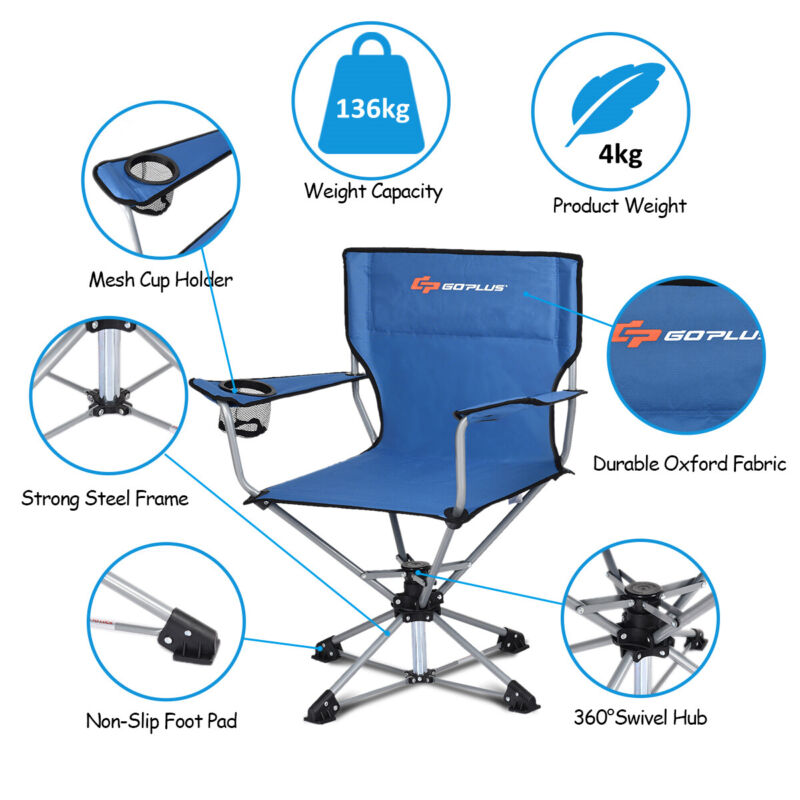 Swivel Camping Chair Collapsible Portable Picnic Fishing Garden Outdoor Chair