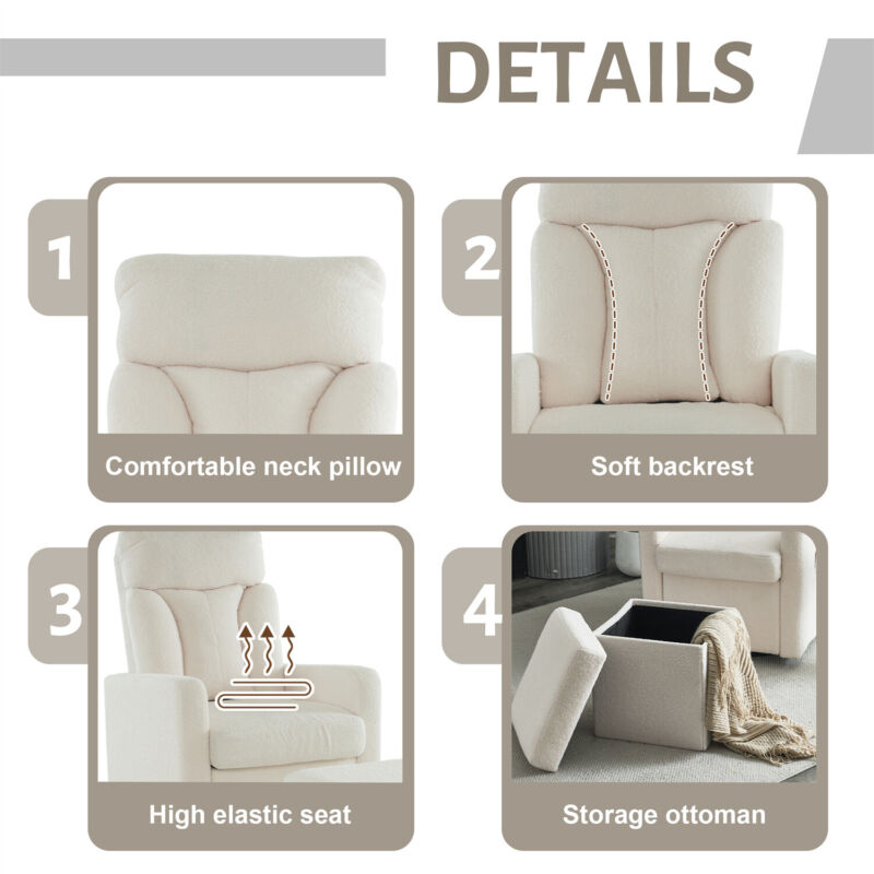 Swivel Chair with Ottoman Footrest Stool Armchair Single Padded Seat Sofa BT