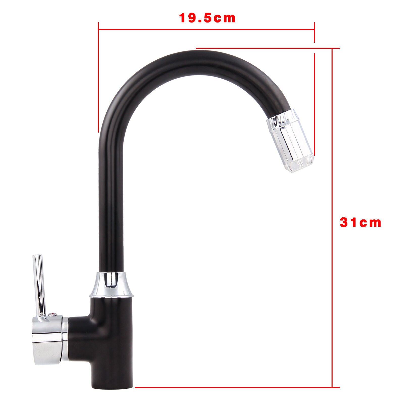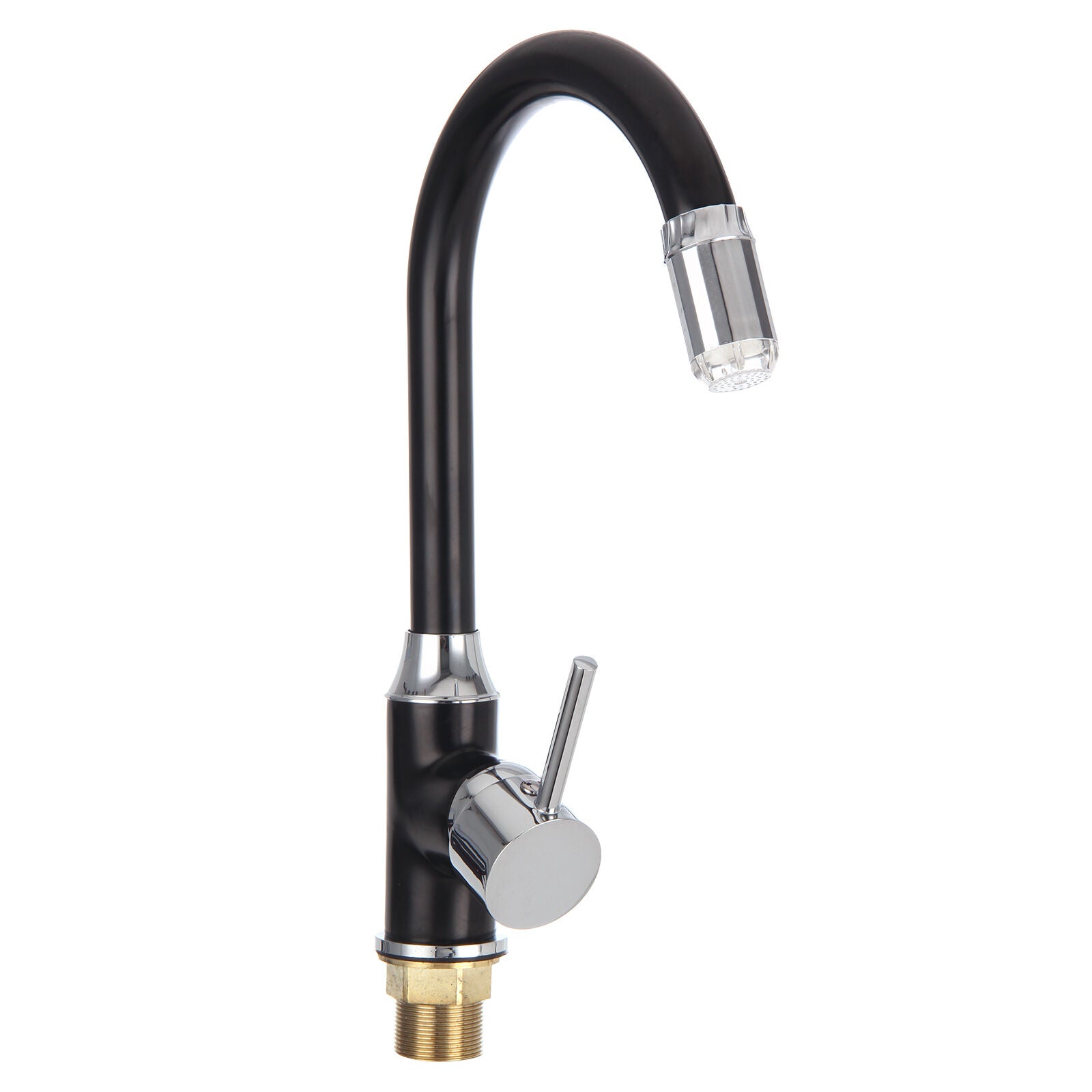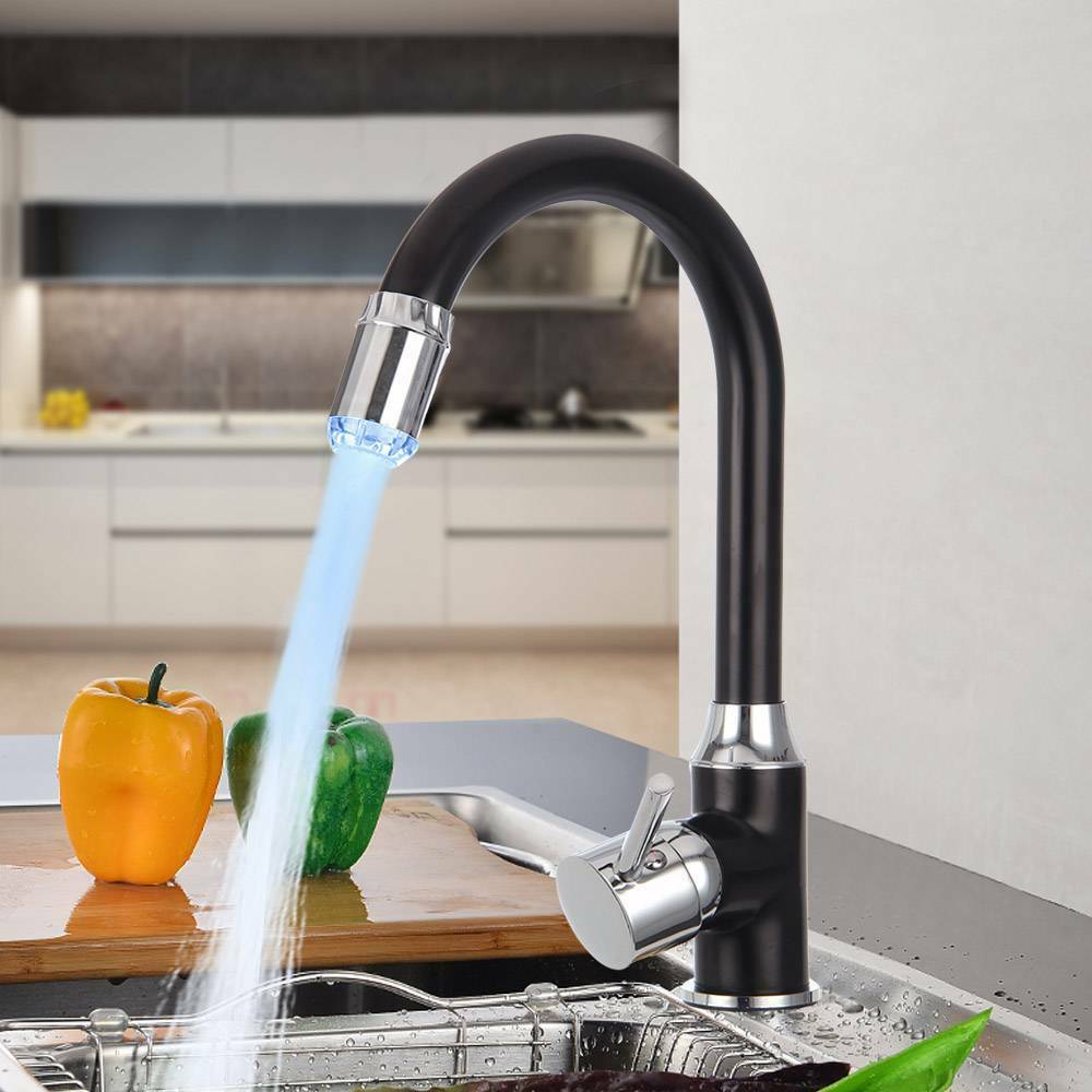 Swivel Spout Kitchen Sink Mixer Taps LED Colors Hand Spray Faucet Pull Out