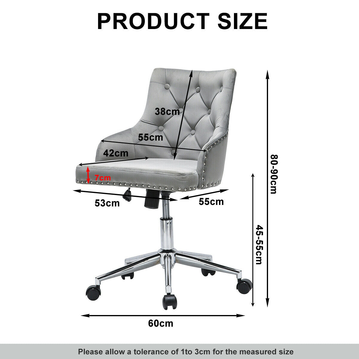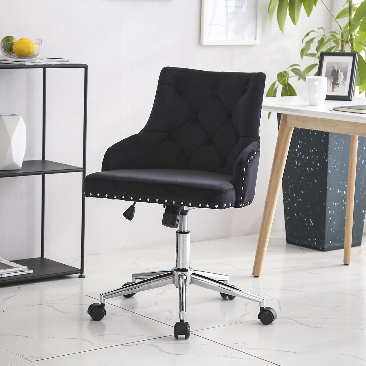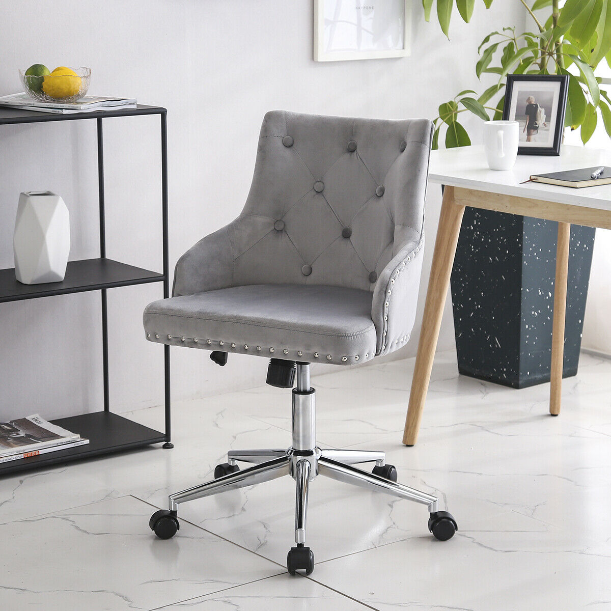 Swivel Velvet Office Chair Home Computer Desk Chair Ergonomic Adjustable Back UK