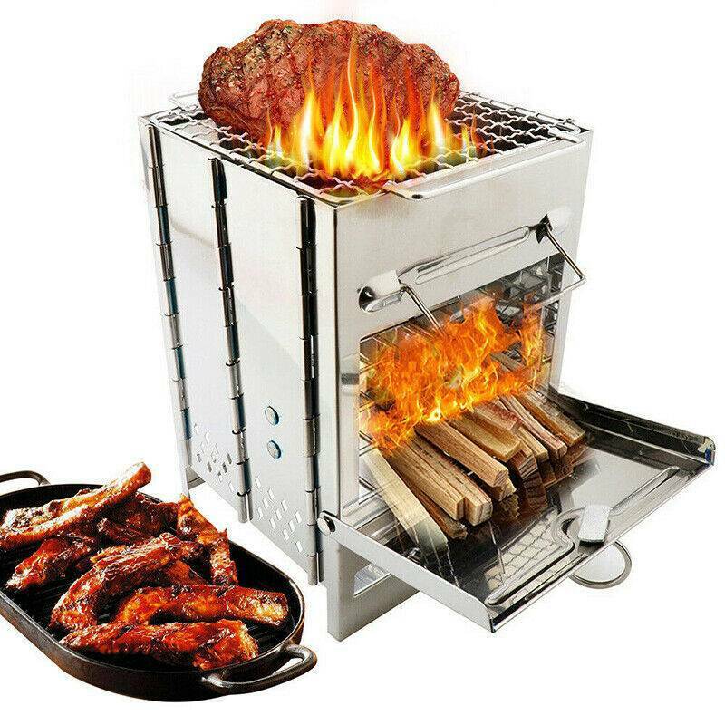 SYST Portable Outdoor Stove Camping Cooking Picnic BBQ Steel Wood Burner Cooker