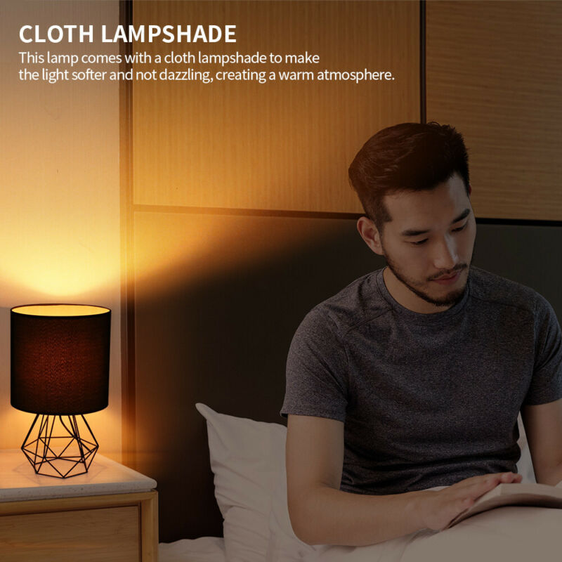 Table Lamp 40cm Modern Bedside Lamps Shade Wire Cage Lounge Light Copper UK