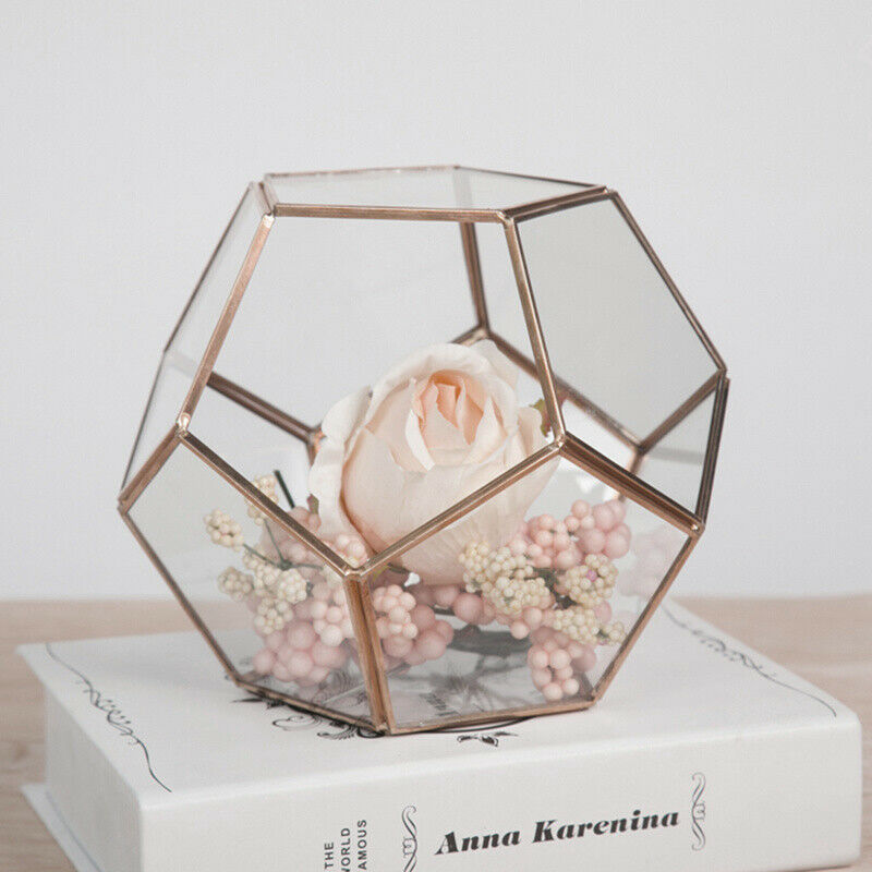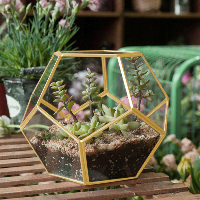 Tabletop Container Box Geometric Succulent Bonsai Pot Metal Glass Terrarium UK