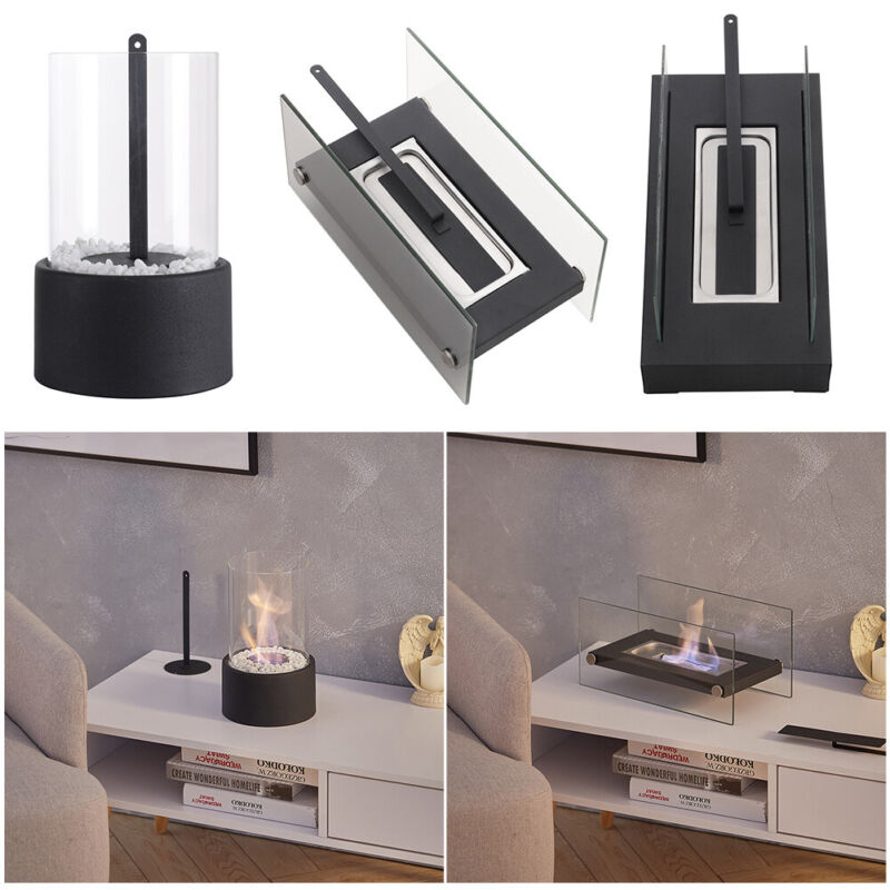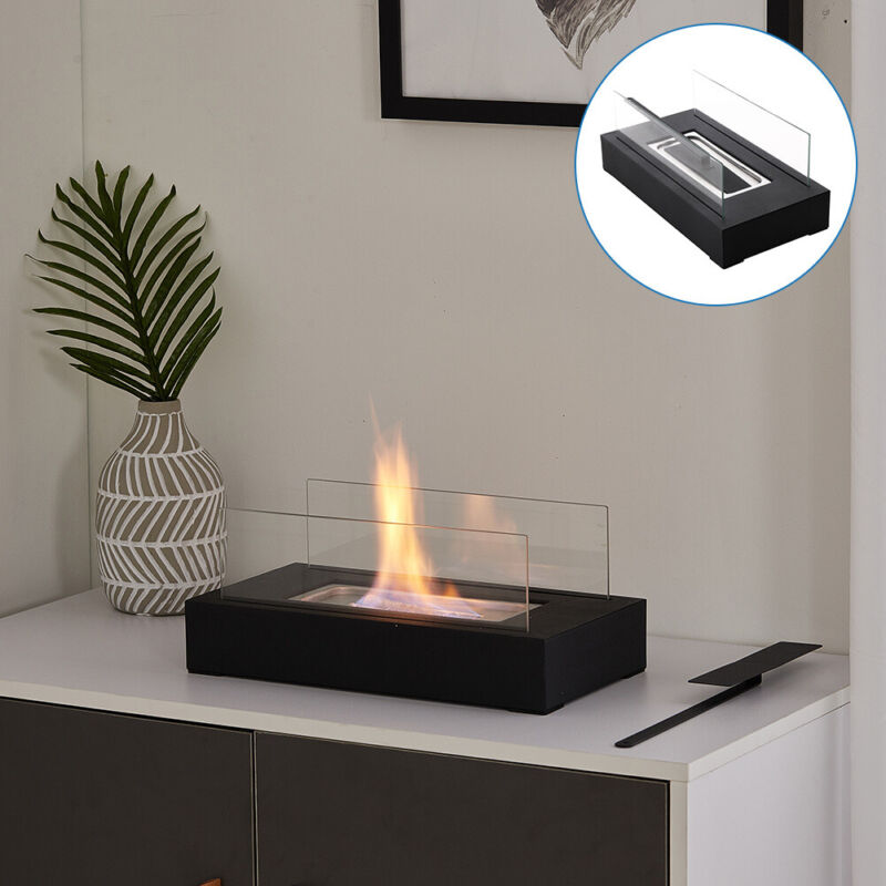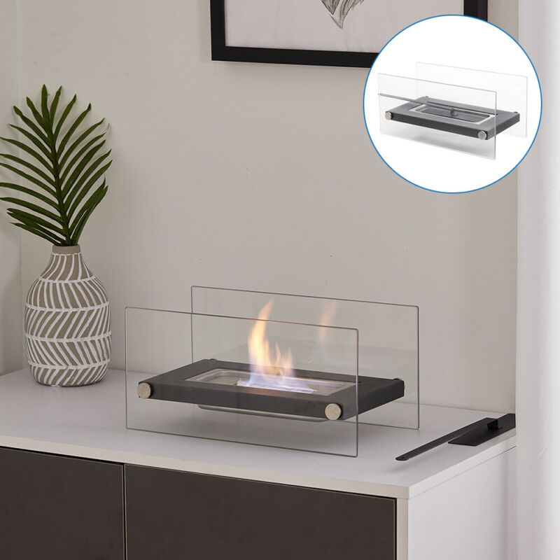 Tabletop Portable Bio Ethanol Fireplace Glass Top Burner In/Outdoor Fire Burner