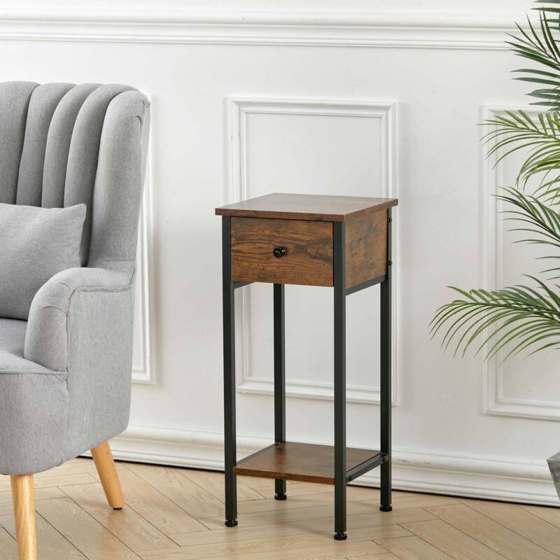 Tall Bedside Narrow Side Night Stand Side Table with Drawer Hallway Console Desk