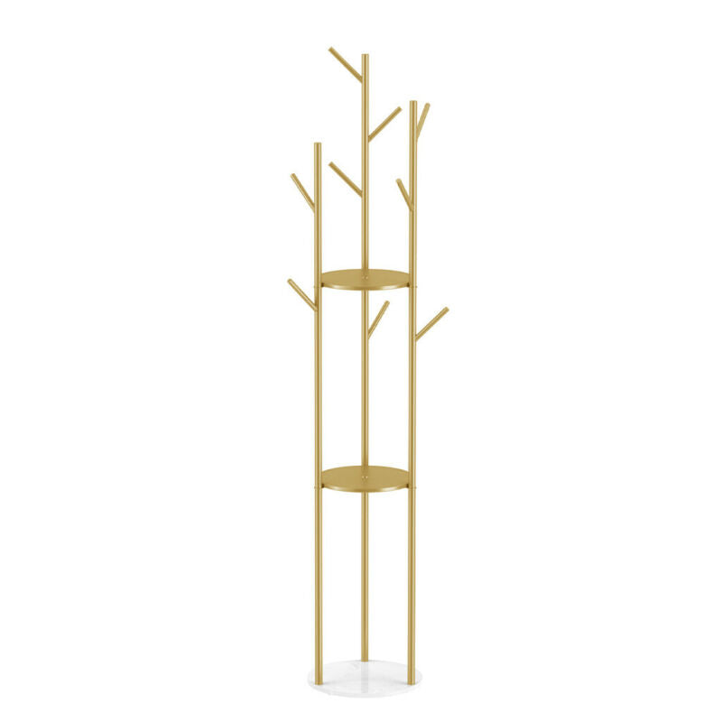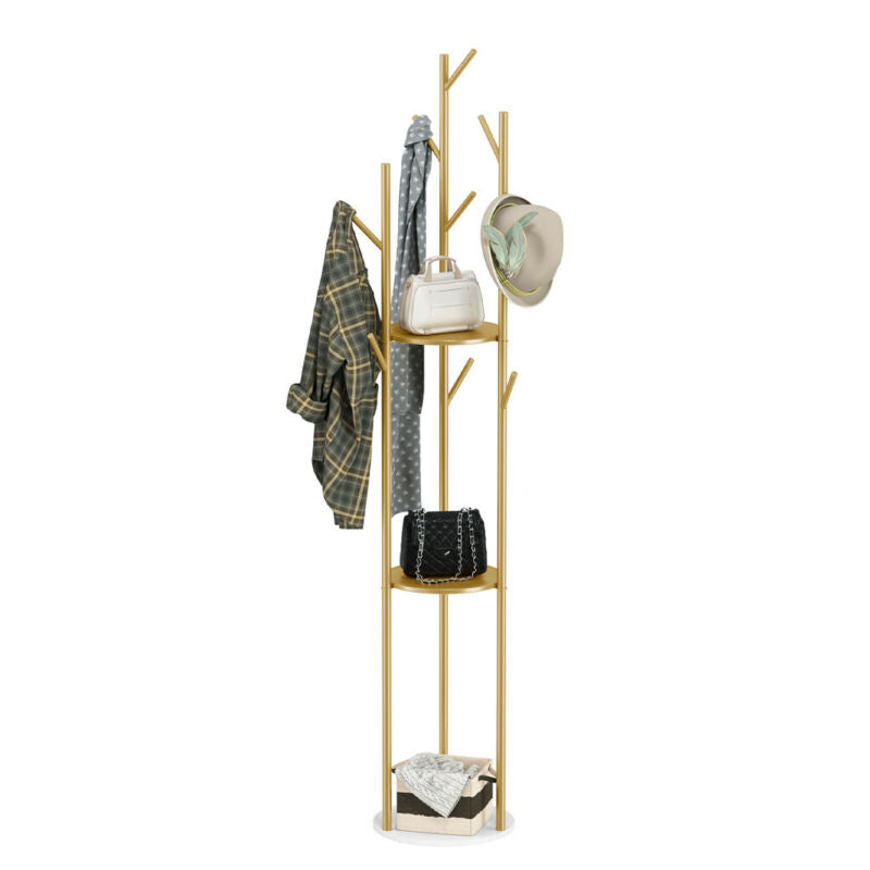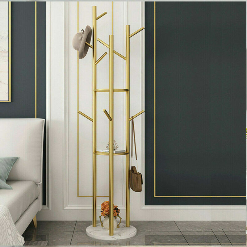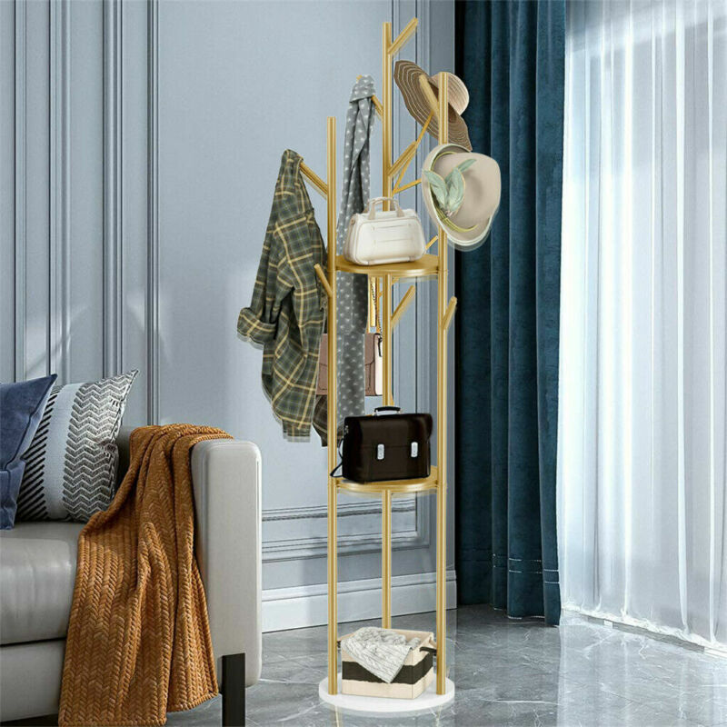 Tall Coat Rack Stand Entryway Hall Sofa Corner Clothes Hooks Hanger Shelf 3 Tier
