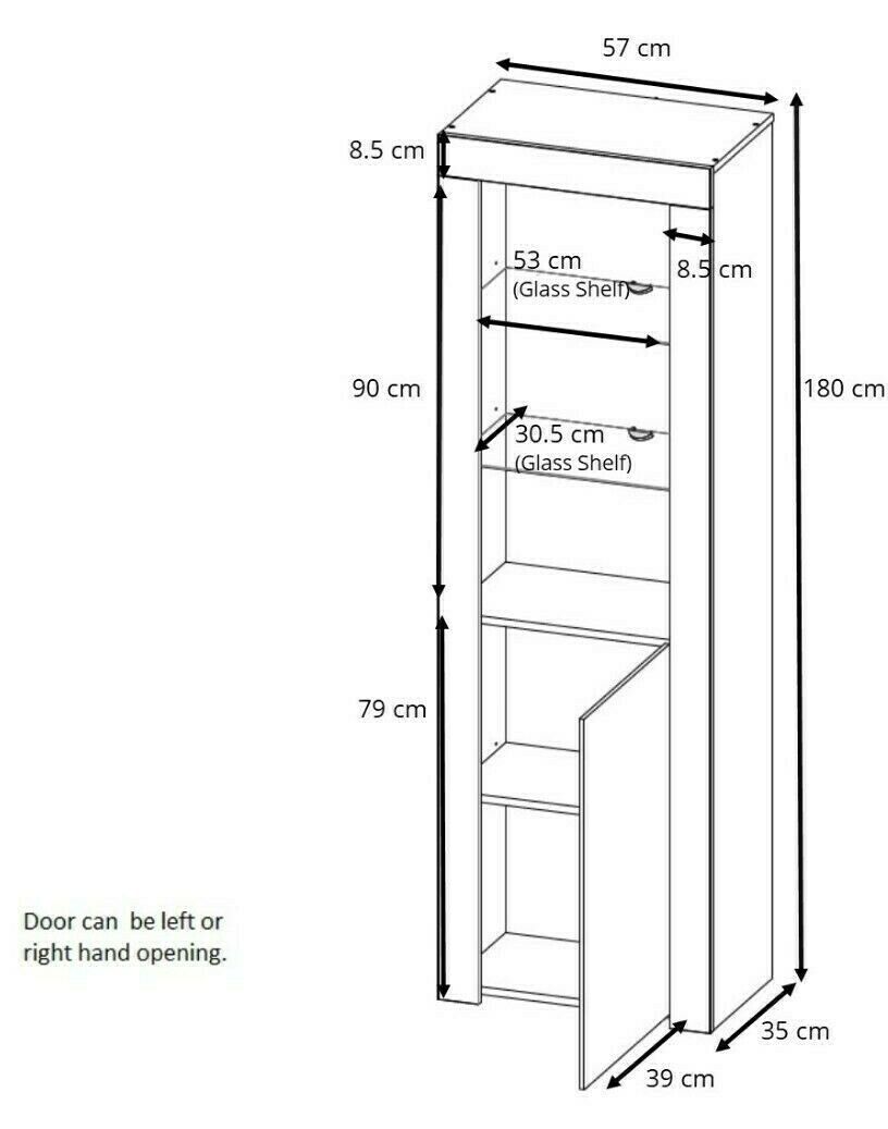 Features: Glass Shelf, Solid Shelf, 1 Door, With Blue LED Lighting Clips, Adjustable, Flat Pack, High Gloss, With Doors