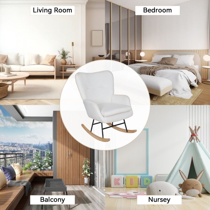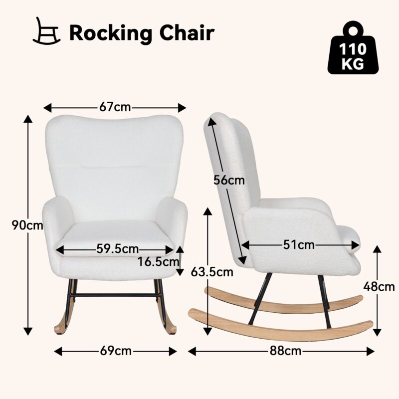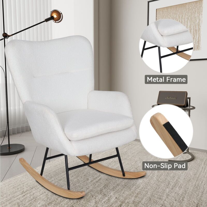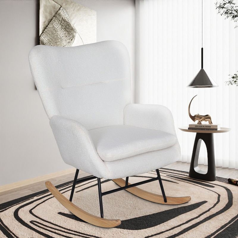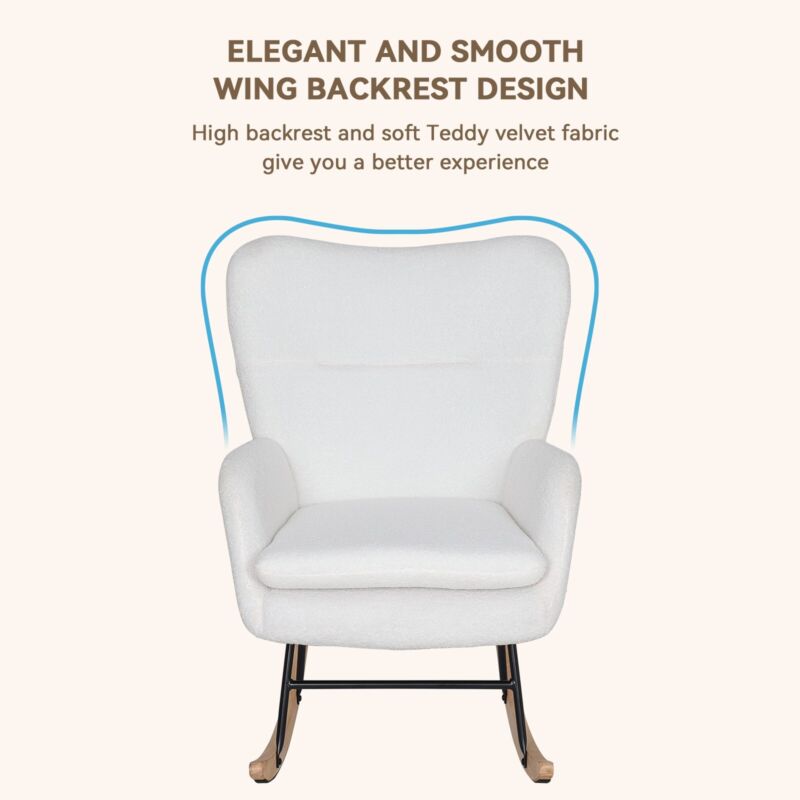 Teddy Fleece Rocking Chair Wingback Armchair Accent Chairs Nursing Soft White