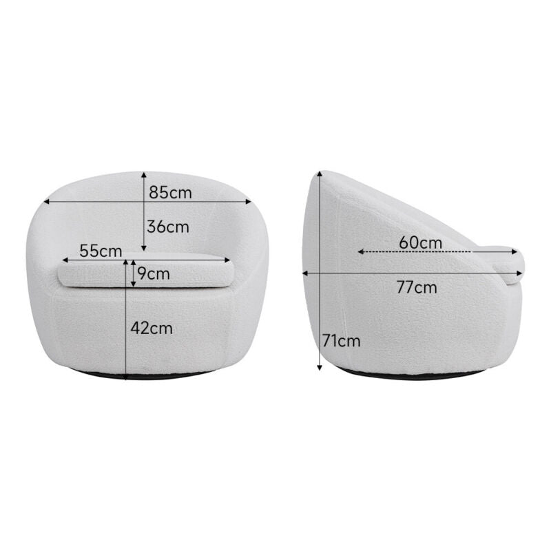 Teddy Velvet Single Sofa Swivel Tub Round Back Armchair White Leisure Chair
