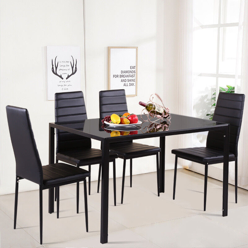 Tempered Glass Top Dining Table Chair Set Black/White 4/6 Kitchen Leather Chairs