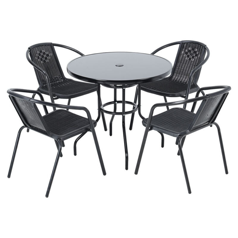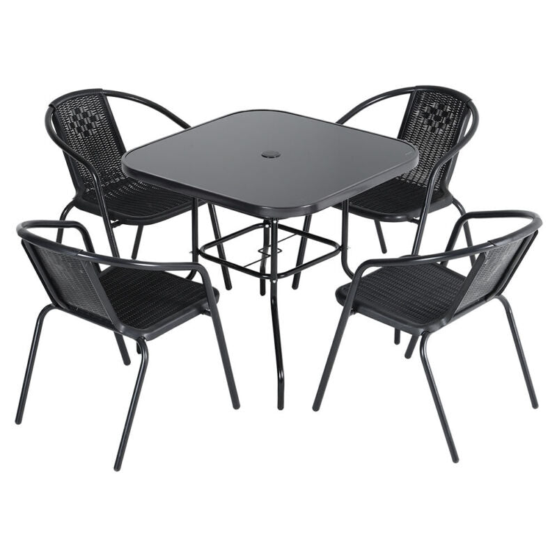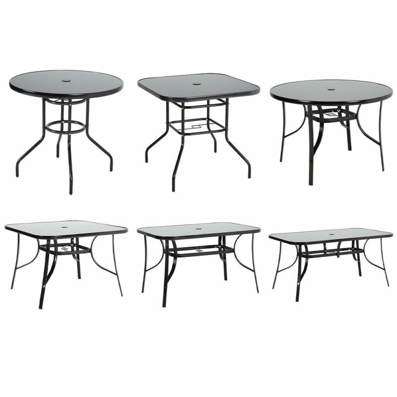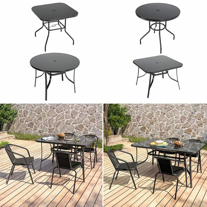 Tempered Glass Top Table Garden Dining Table Outdoor Patio Bistro Umbrella Hole