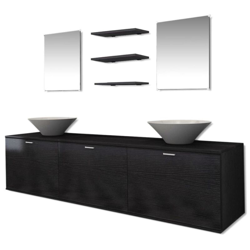 Ten Piece Bathroom Furniture Set with Basin with Tap Black M4R9
