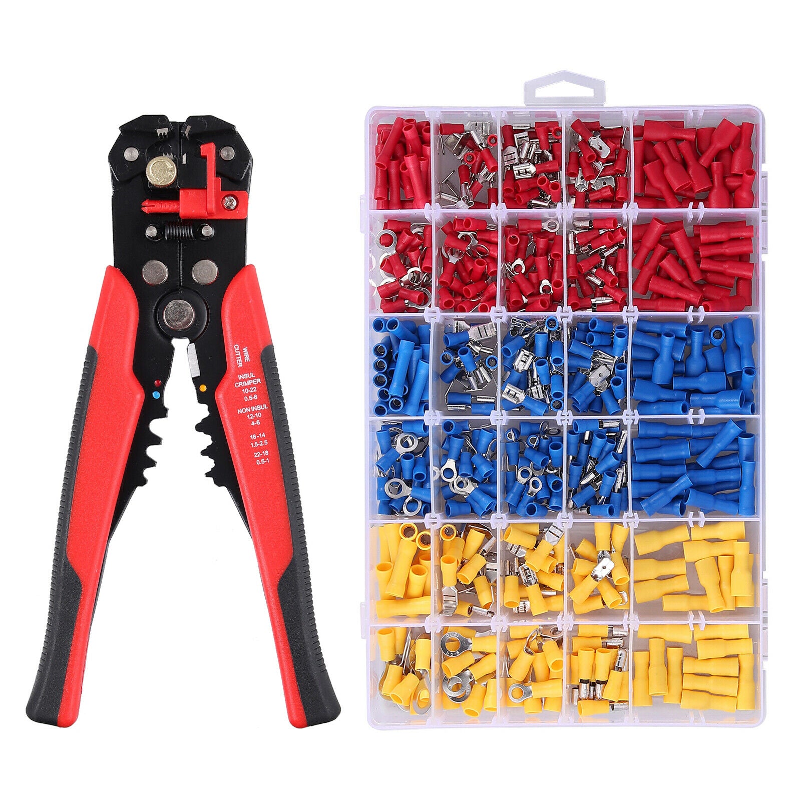 Terminal Kit Connector Electrical Stripper 500 Wire Ratchet Crimp Plier Tool Set