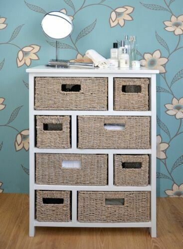 Condition: New: A brand-new, unused, unopened and undamaged item in original retail packaging (where packaging ... Basket Dimensions (cm): Large Basket (W31, H15, D27), Small (W14, H15, D27) Item Dimensions (cm): W56cm, H80cm, D34cm Brand: Statement Furniture Item Height: 60 - 80 cm Item Length: 34 cm Item Width: 51 - 70 cm Number of Drawers: 8 Type: Chest of Drawers Additional Parts Required: No Assembly Required: No Colour: White Department: Adults Finish: Painted Item Depth: 34 cm Item Weight: 17 kg MPN: VINH-WR1907-WW Material: Wood Mounting: Free Standing Product Line: Tetbury Furniture Required Tools: No Tools Required Room: Any Room Shape: Rectangular Style: Contemporary UPC: Does Not Apply ISBN: Does Not Apply EAN: 5060346450834