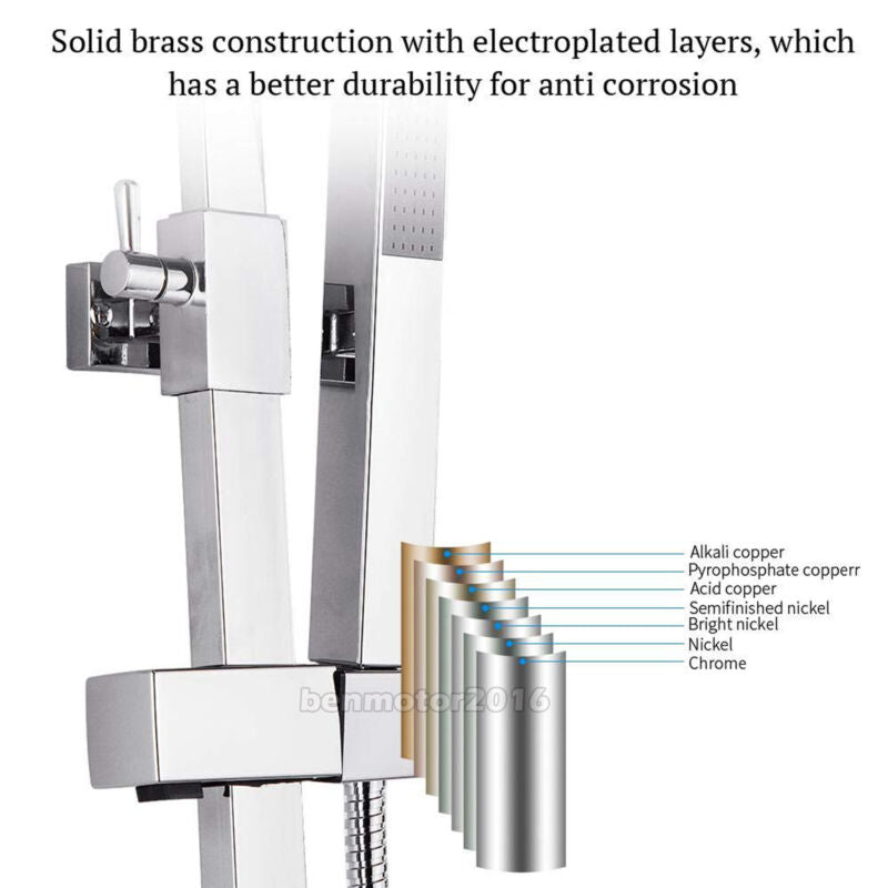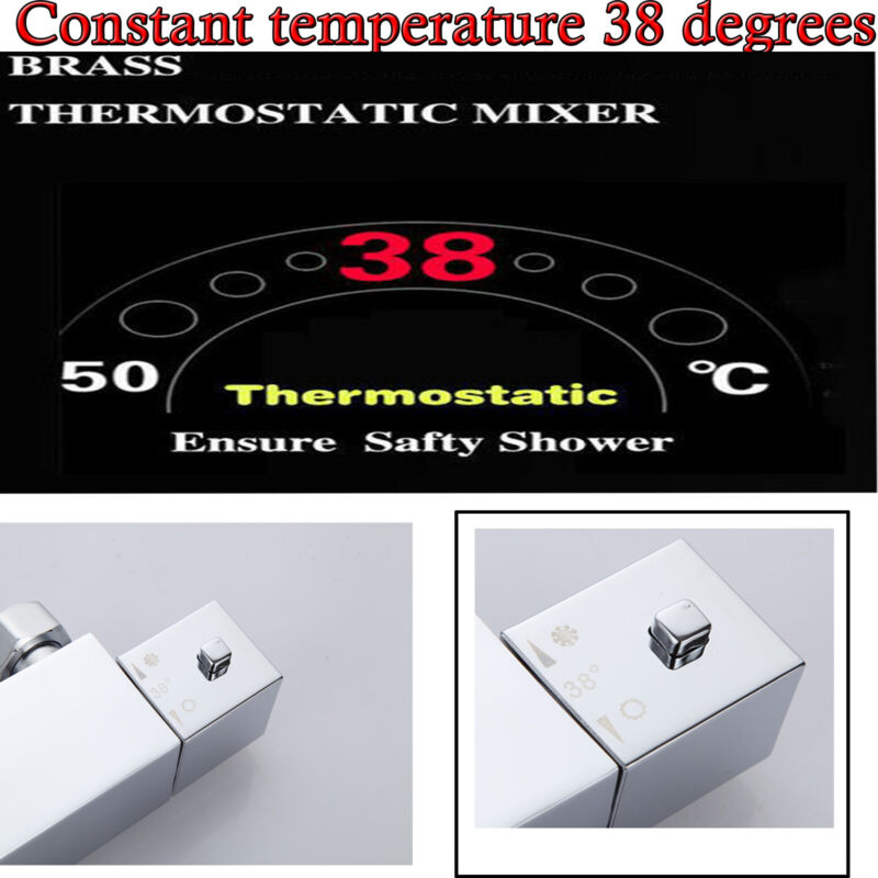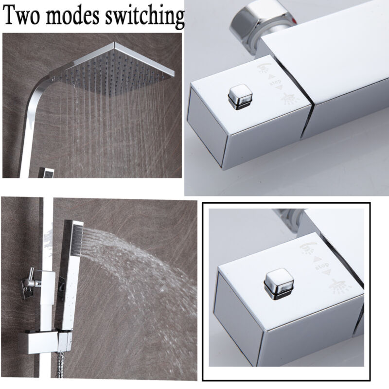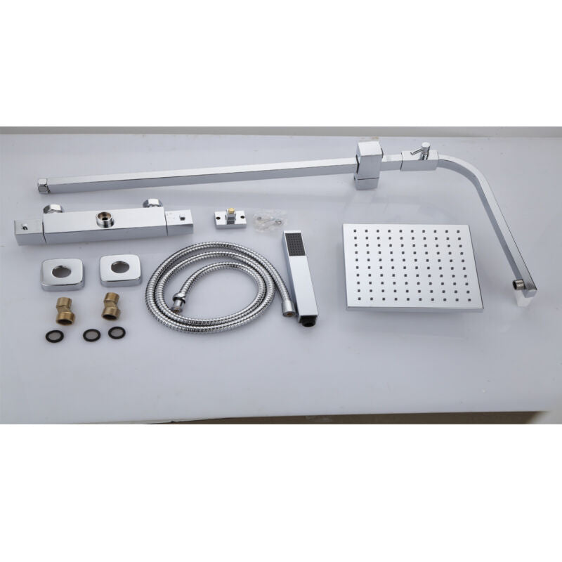 Thermostatic Bath Shower Mixer Set Square Twin Head Expose Valve Rainfall Chrome