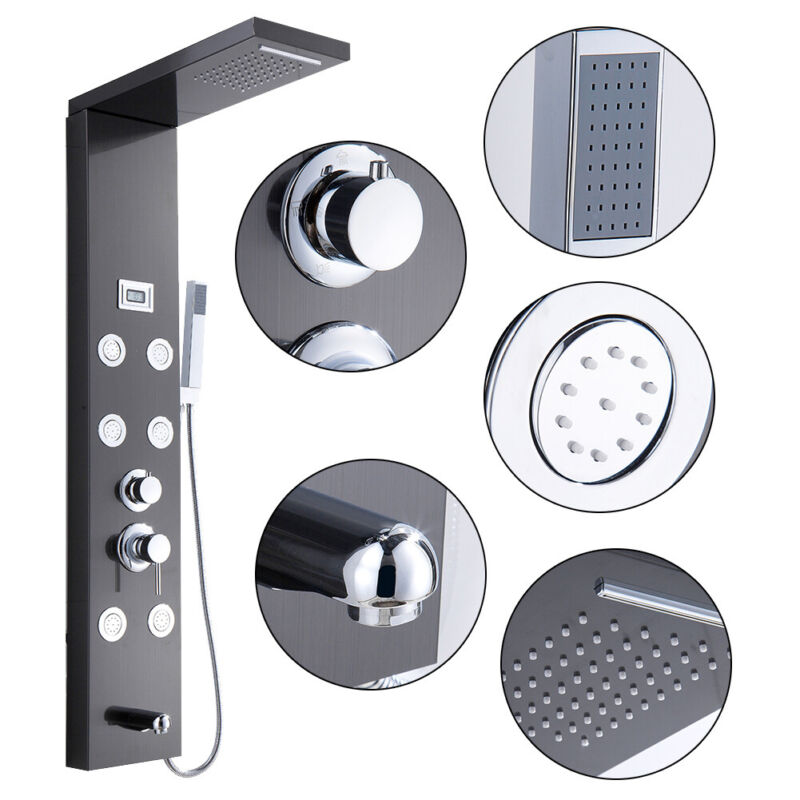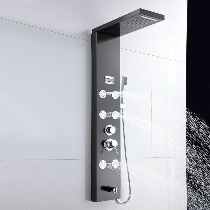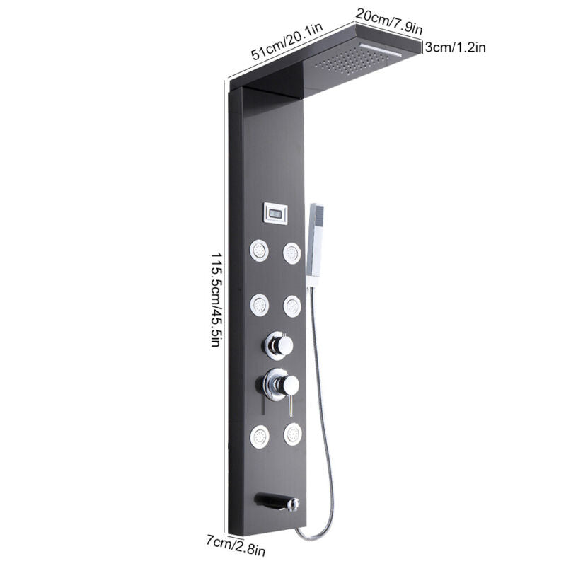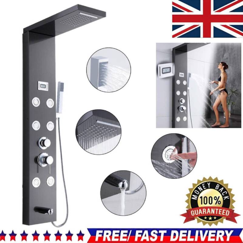 Thermostatic Shower Panel Column Tower With Body Jets Twin Head Bathroom Showe
