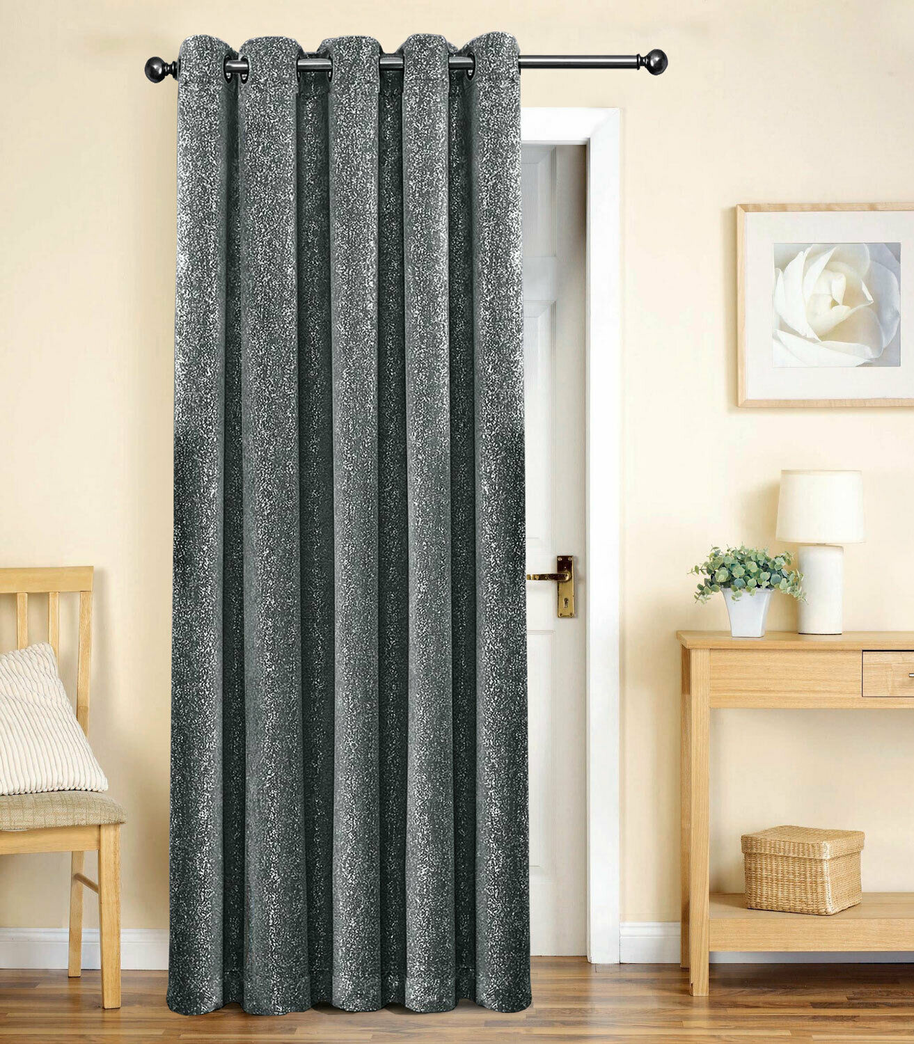 Thick Glitter Single Panel Door Curtain 66" x 84" Ready Made Eyelet & Tie Backs