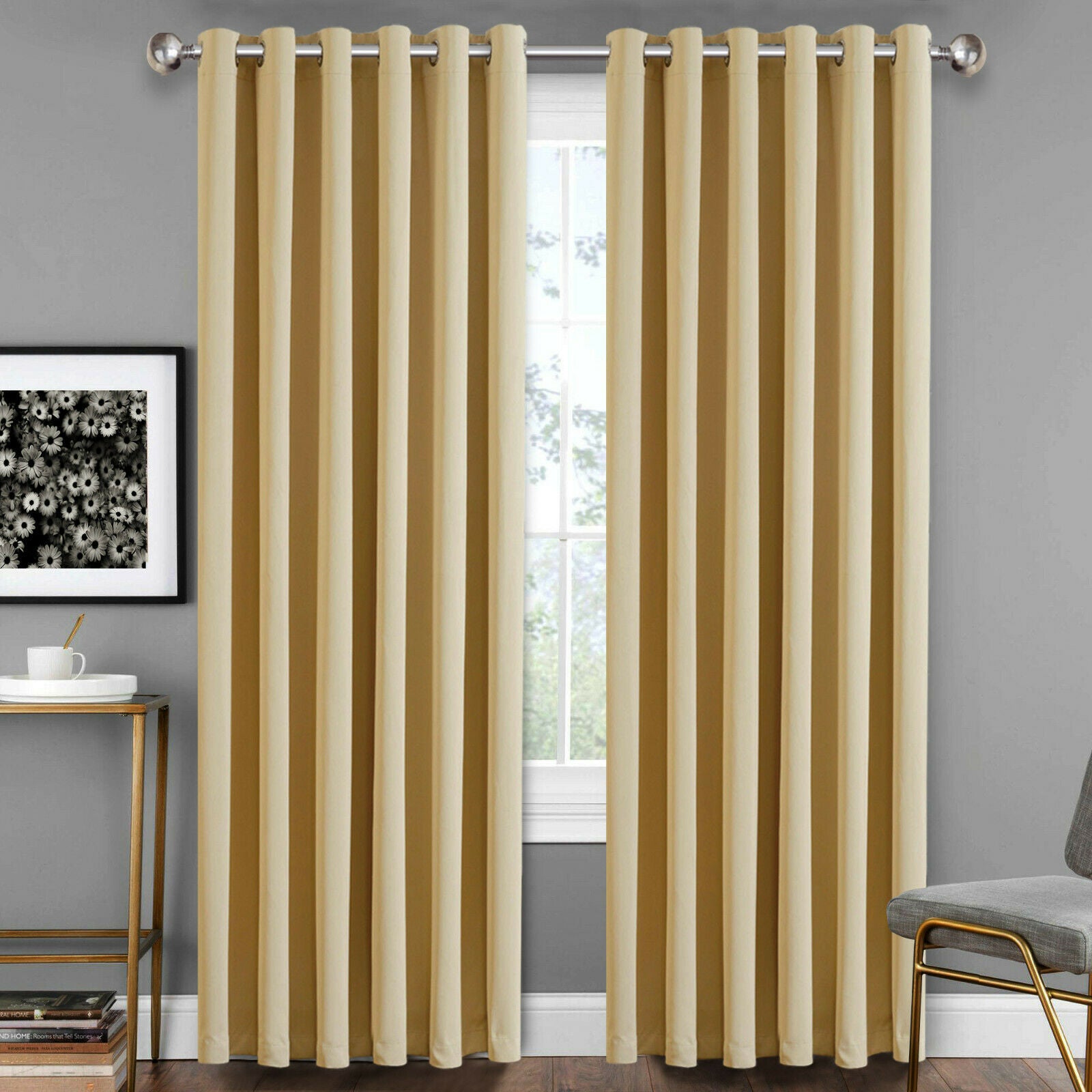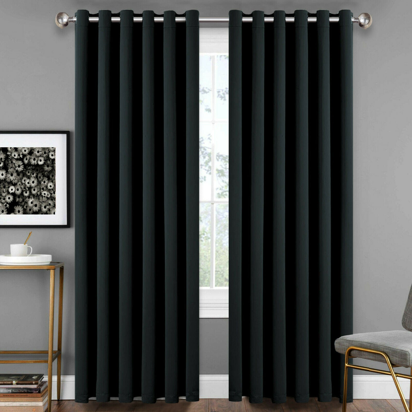 Thick Thermal Blackout Curtains Pair of Eyelet Ring Top Ready Made Curtain Panel