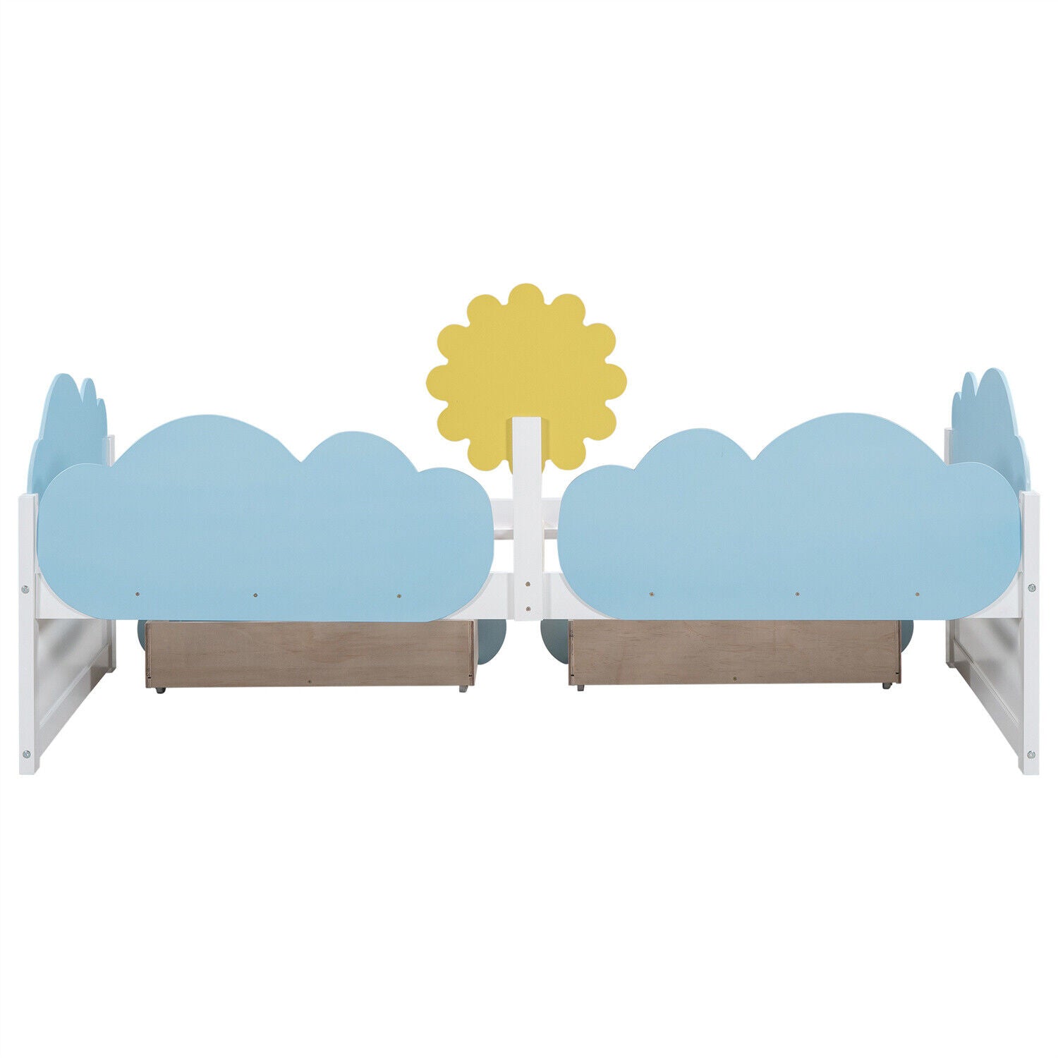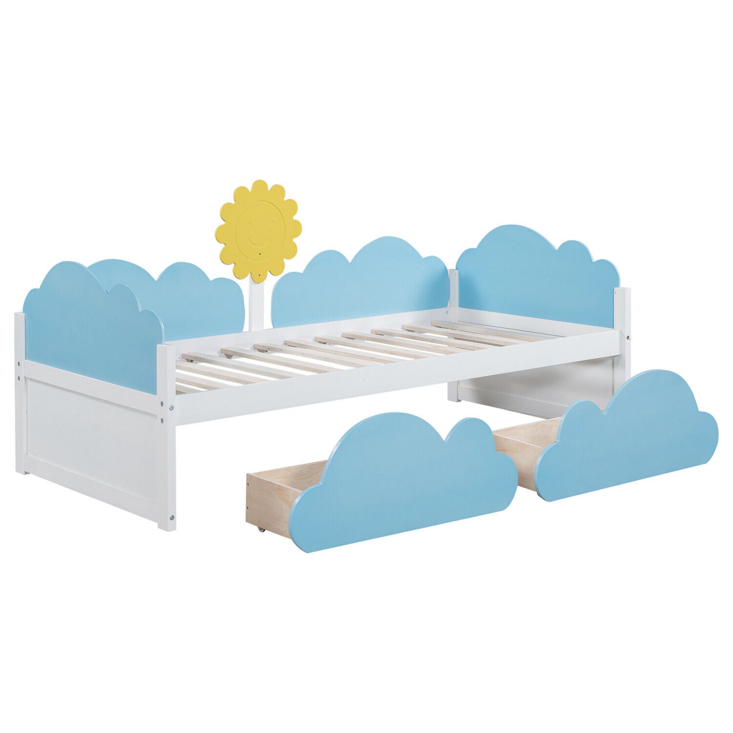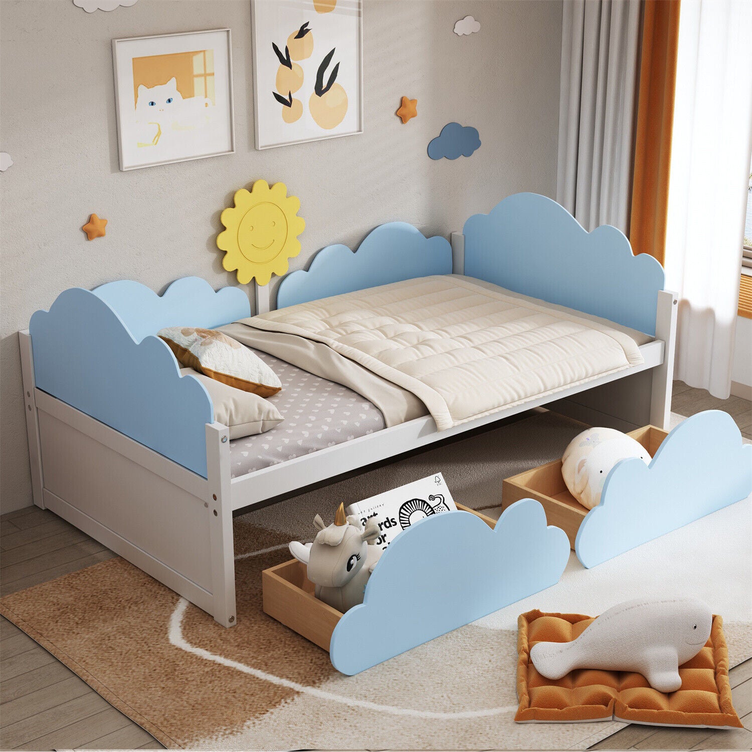 Toddler Bed 3ft Single Size Cloud Shape Junior Kids Bed with 2 Storage Drawers