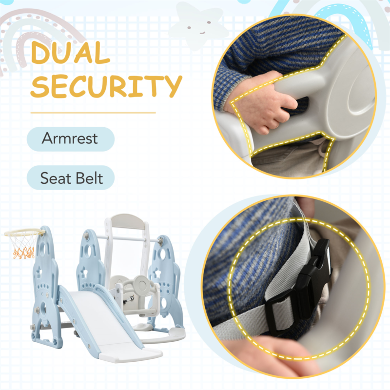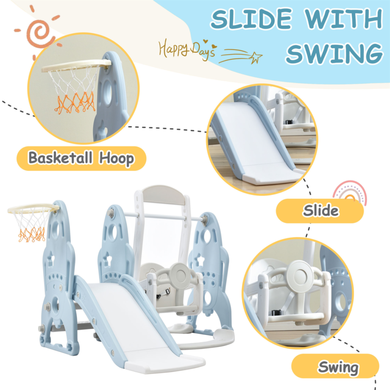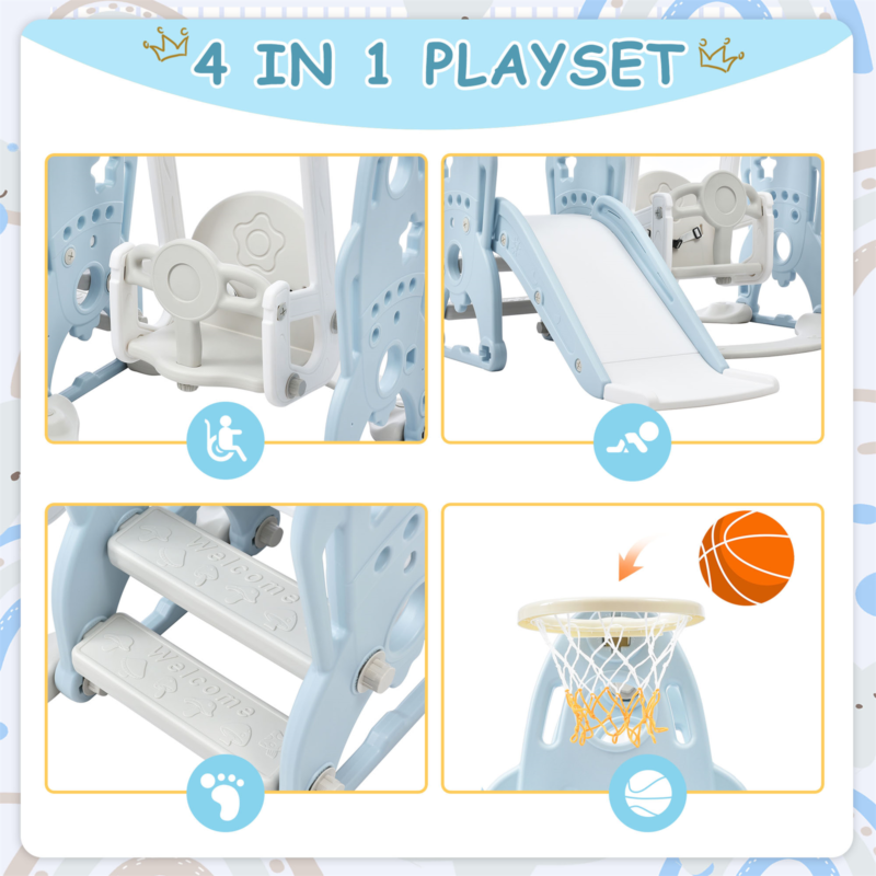 Toddler Slide and Swing Set 4 in 1, Kids Playground Climber Swing Playset Blue