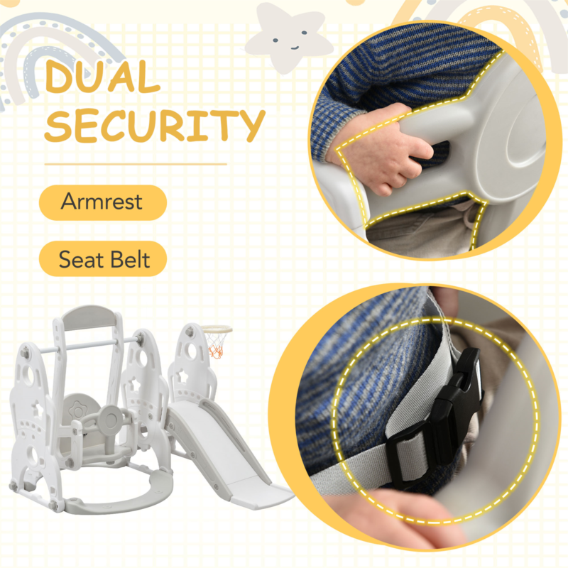 Toddler Slide and Swing Set 4 in 1, Kids Playground Climber Swing Playset Grey