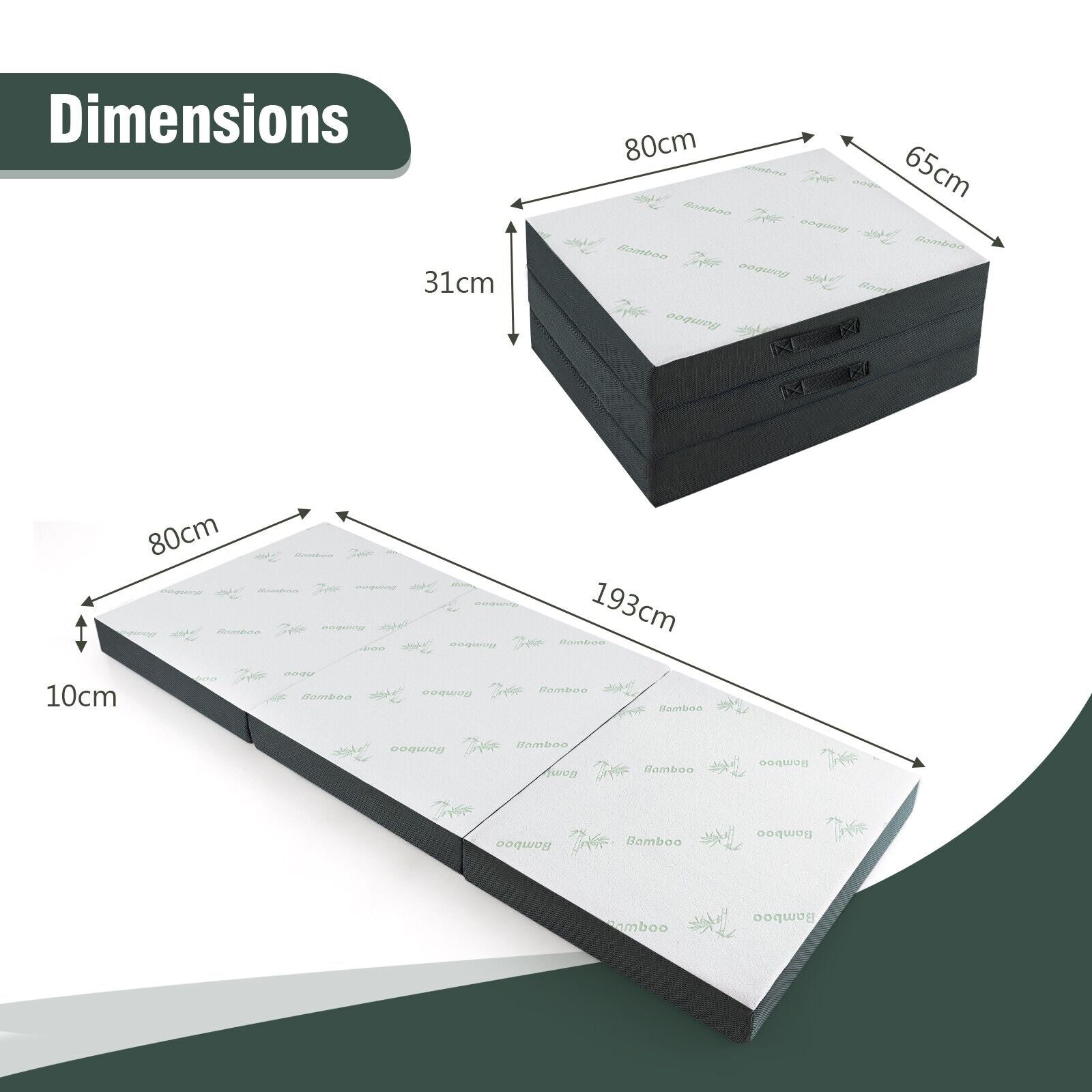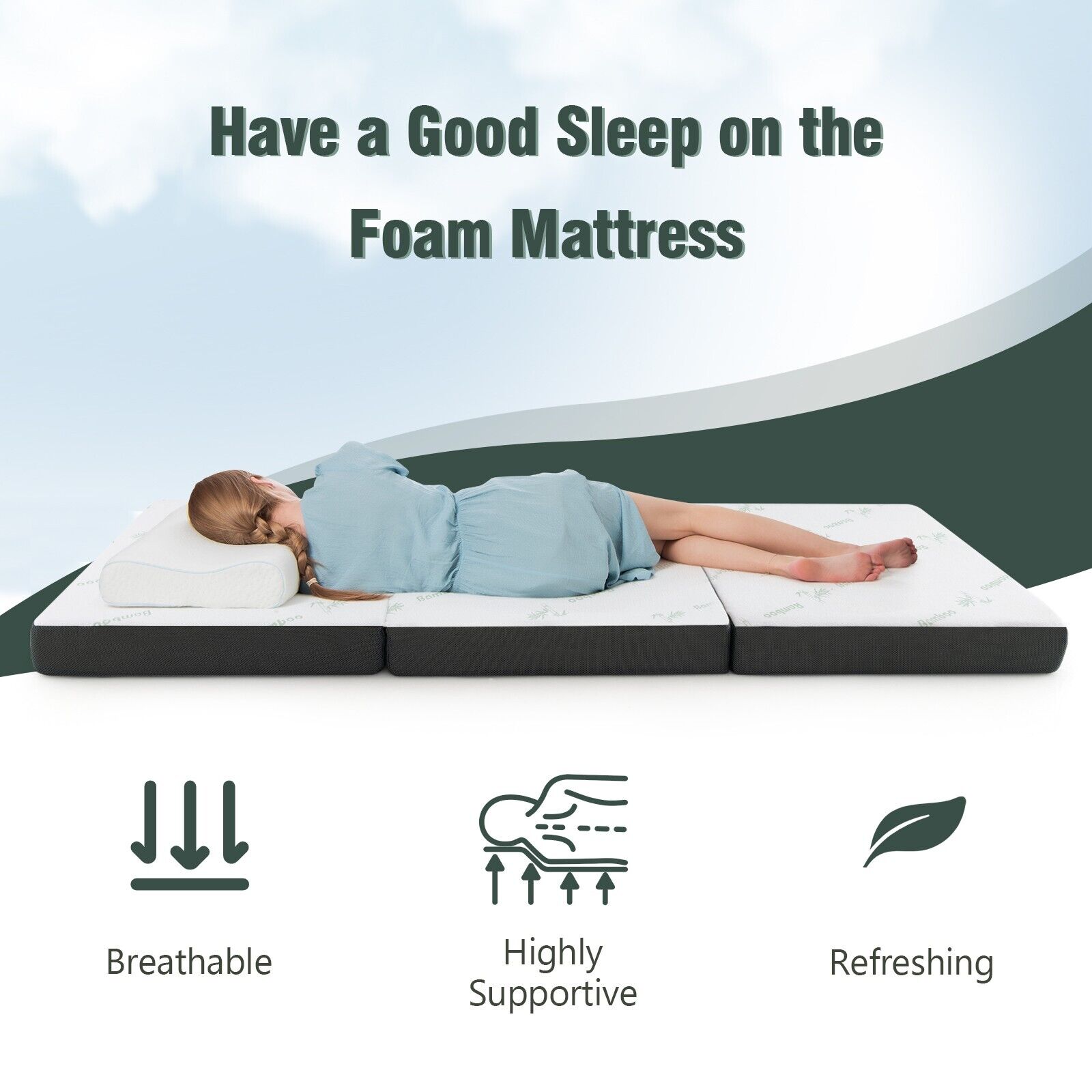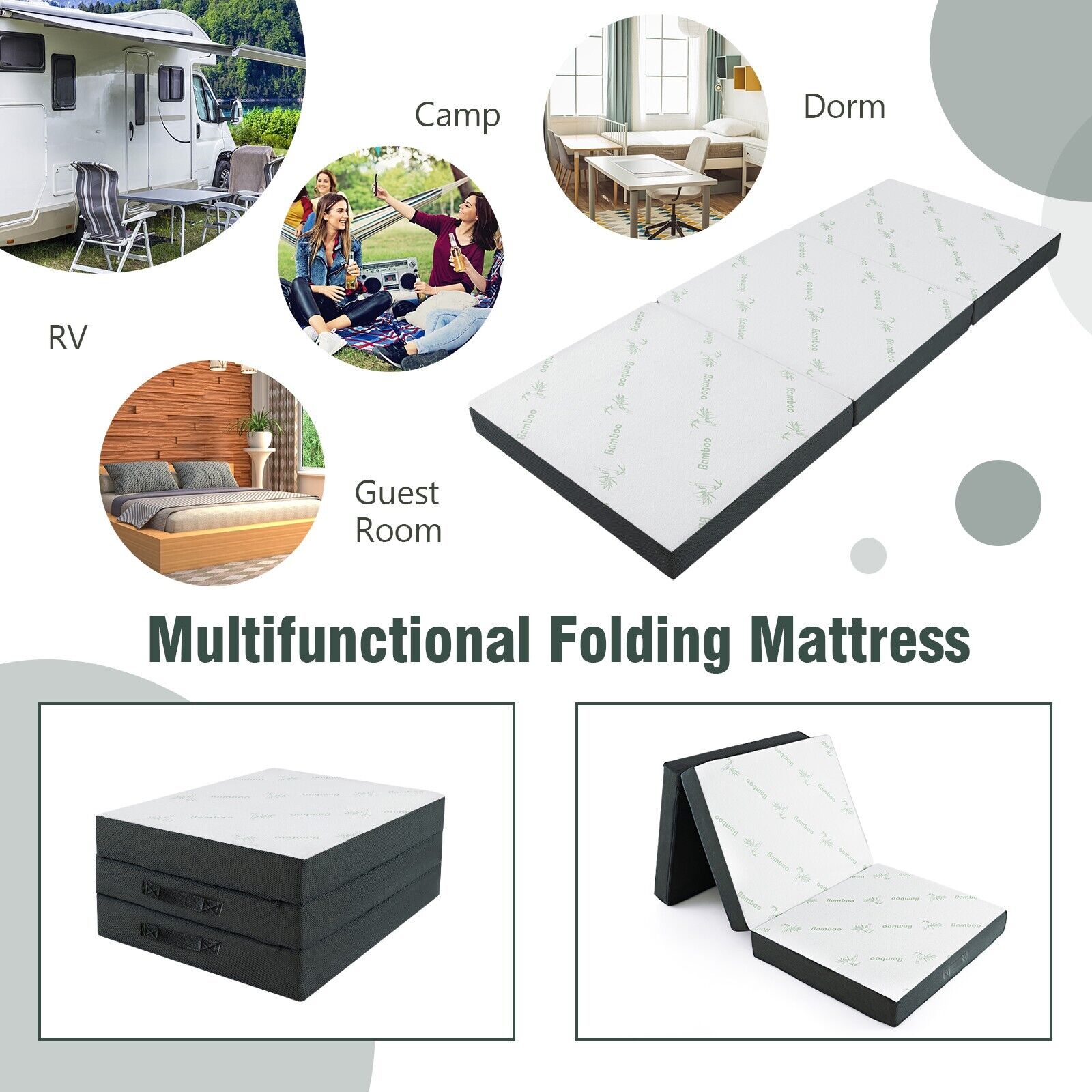 Tri Folding Foam Mattress Portable Floor Foam Mattress Topper w/ Bamboo Fiber