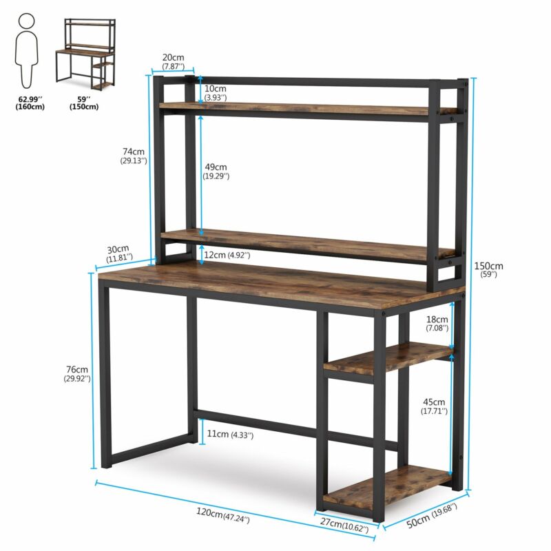Tribesigns Computer Desk with Hutch and Shelves Study Writing Desk Gaming Table