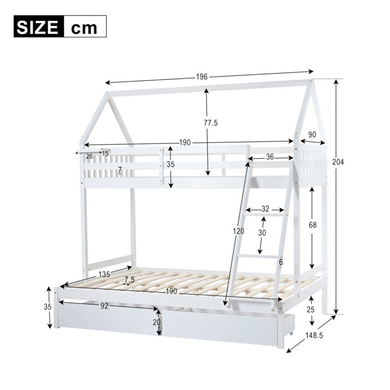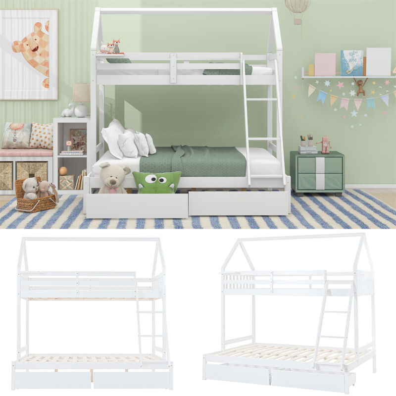 Triple Bunk Beds 3ft Single 4ft6 Double Bed Kids High Sleeper Wooden Bed Frame