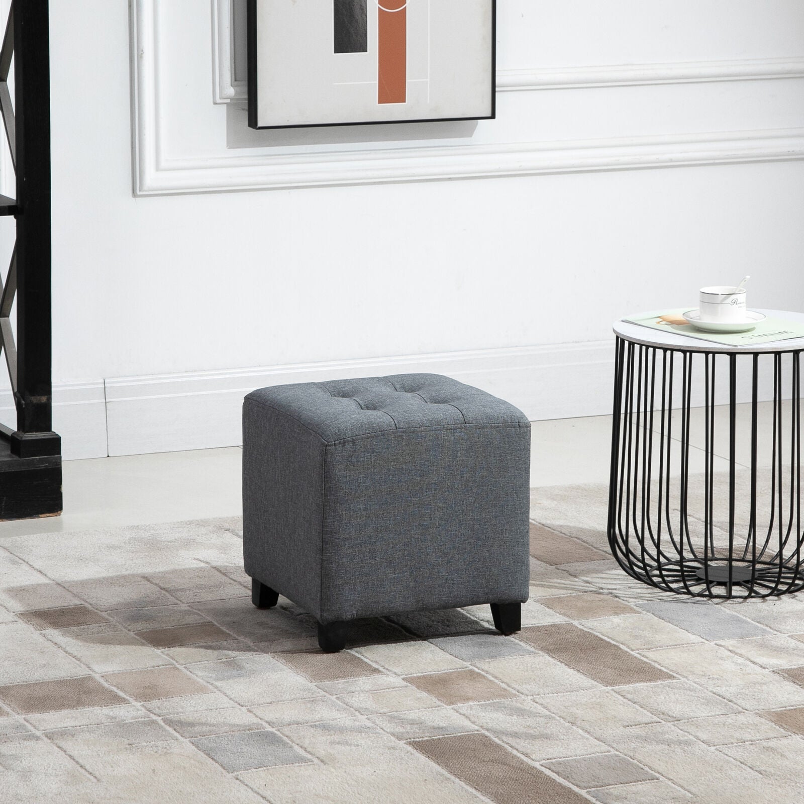 Tufted Ottoman Linen-Touch Fabric Upholstered Footstool Footrest Coffee Table