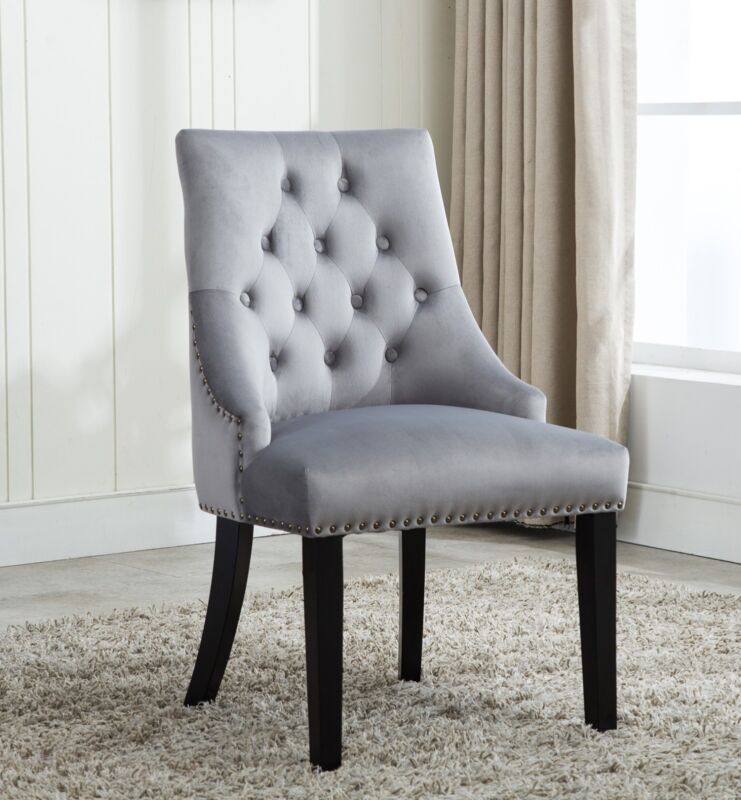 Tufted Velvet Fabric Studded Dining Chair Victoria Accent Side Chair