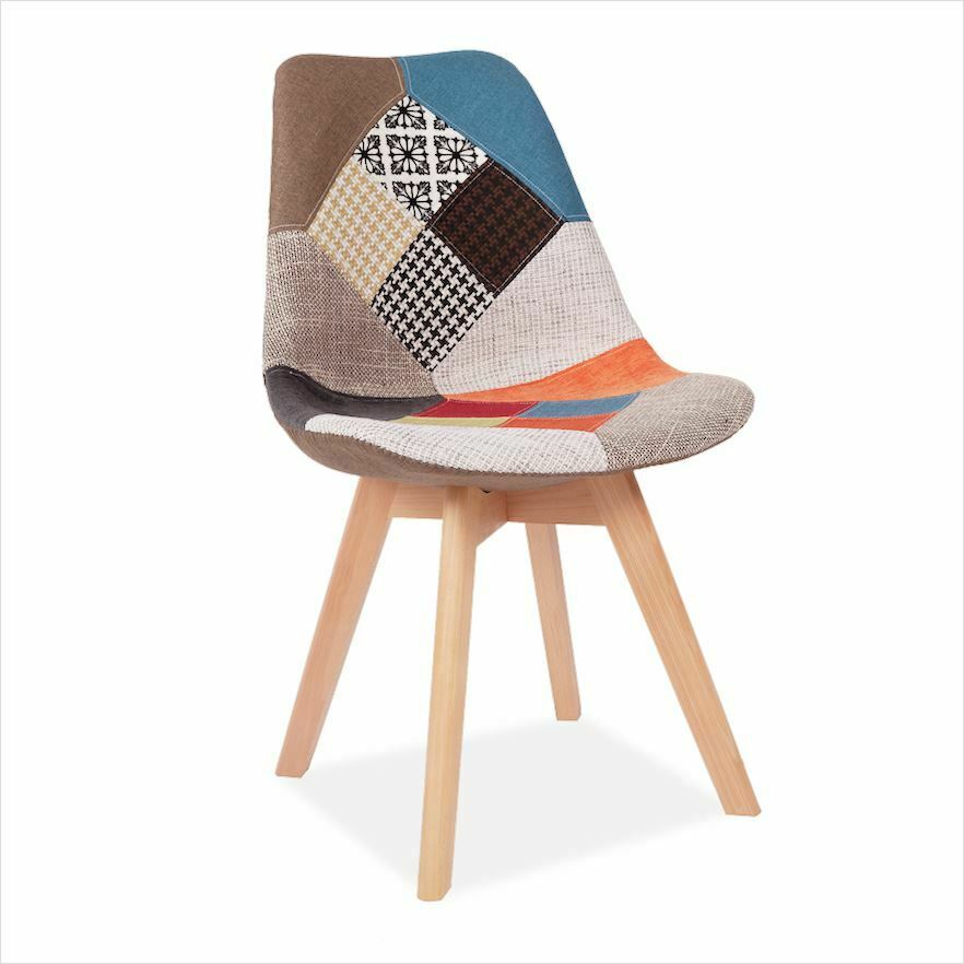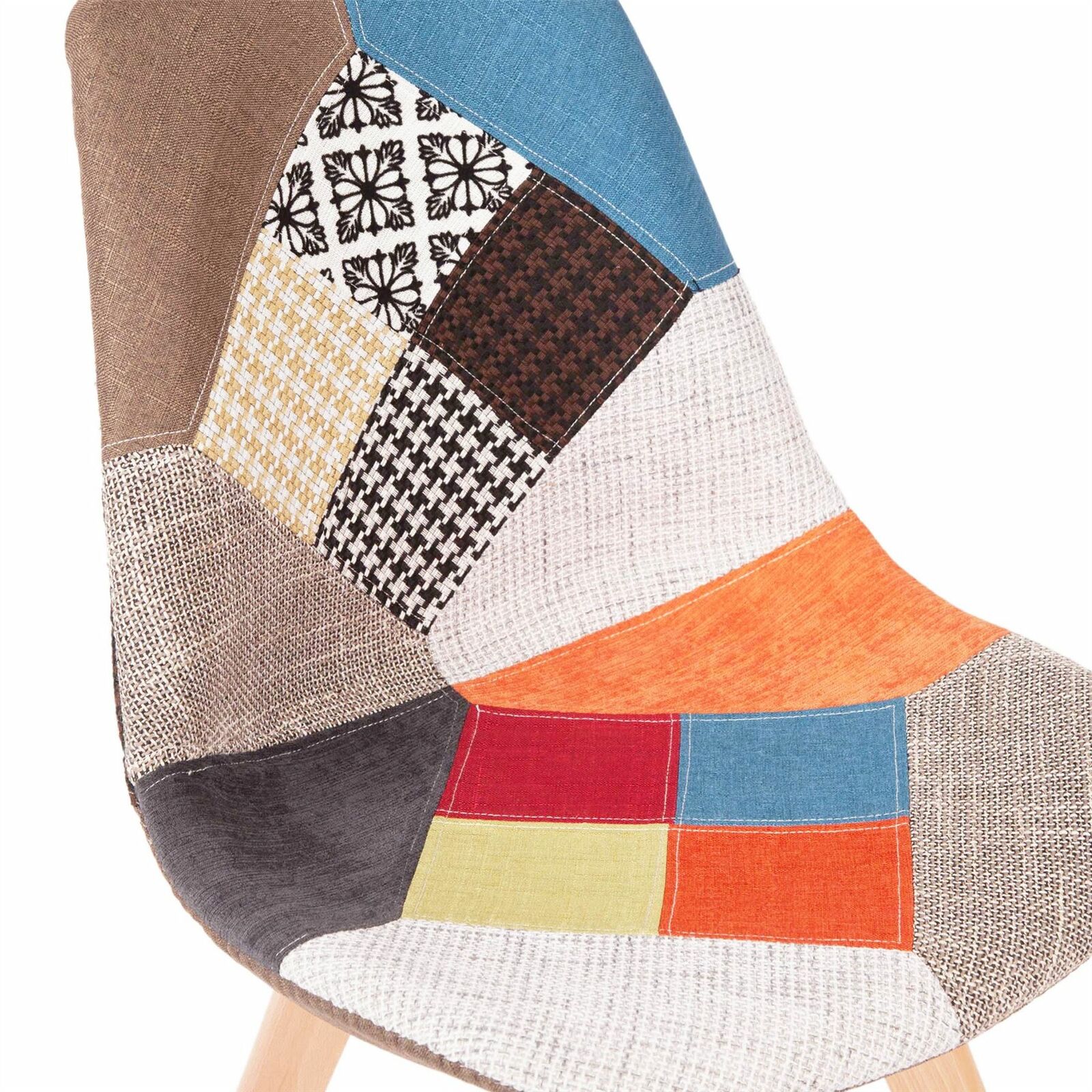 Tulip Patchwork Dining Chair Fabric Seat with Wood Legs Living Room Kitchen